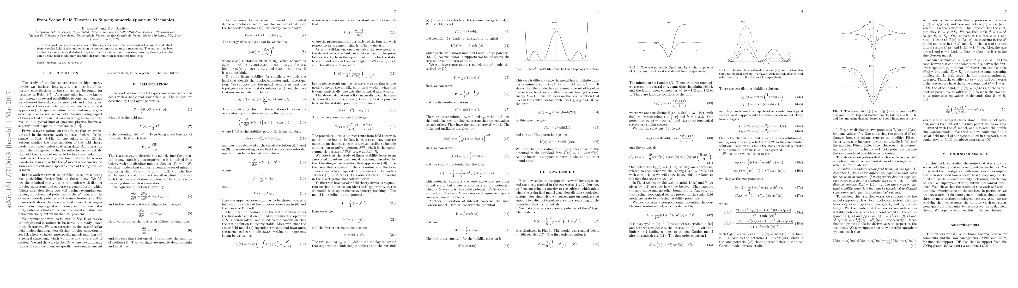 In this work we report a new result that appears when one investigates the route that starts from a scalar field theory and ends on a supersymmetric quantum mechanics. The subject has been studied before in several distinct ways and here we unveil an interesting novelty, showing that the same scalar field model may describe distinct quantum mechanical problems.