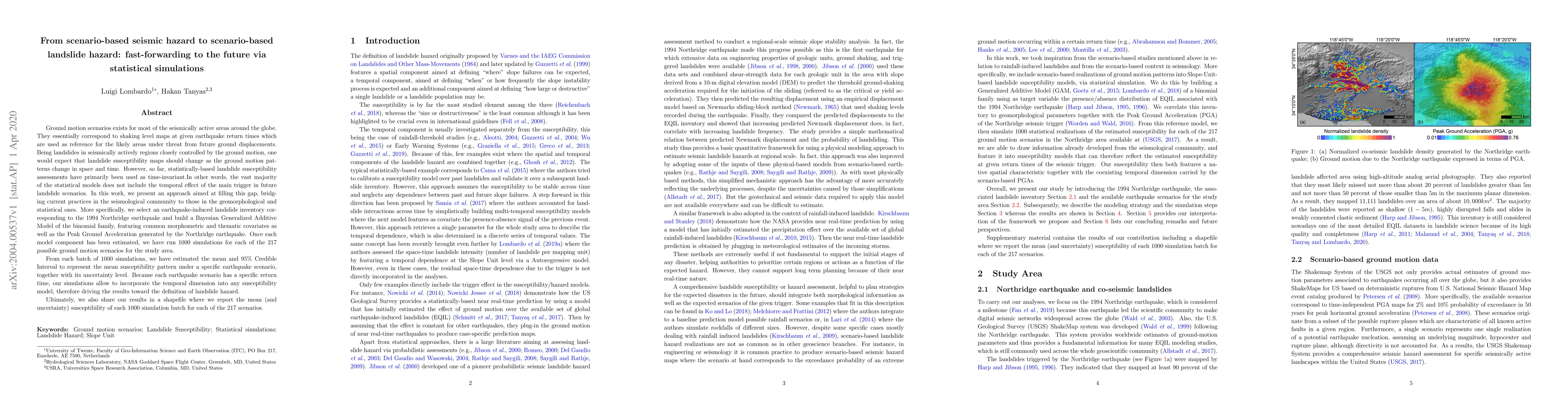 This paper develops a new statistical model to predict landslide hazard based on earthquake scenarios, allowing for incorporation of temporal dimension and uncertainty estimation.
