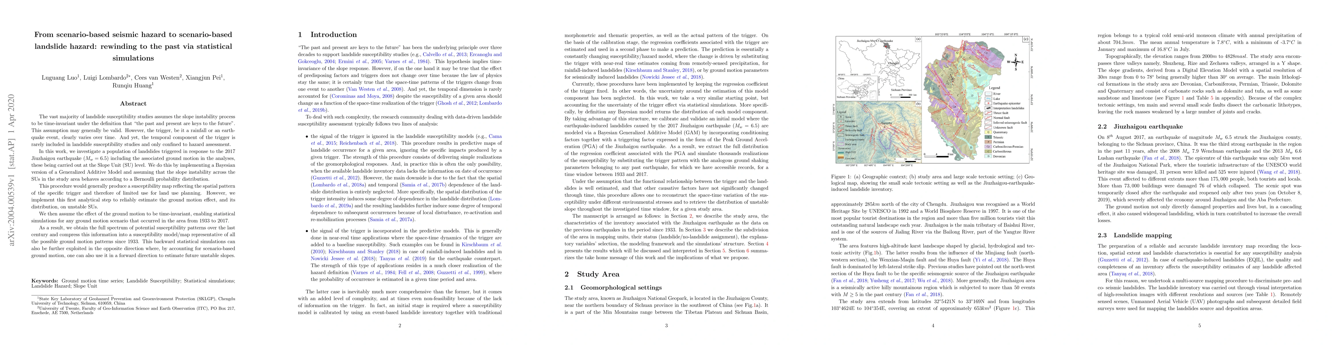 The vast majority of landslide susceptibility studies assumes the slope instability process to be time-invariant under the definition that "the past and present are keys to the future". This assumption may generally be valid. However, the trigger, be it a rainfall or an earthquake event, clearly varies over time. And yet, the temporal component of the trigger is rarely included in landslide susceptibility studies and only confined to hazard assessment. In this work, we investigate a population of landslides triggered in response to the 2017 Jiuzhaigou earthquake ($M_w = 6.5$) including the associated ground motion in the analyses, these being carried out at the Slope Unit (SU) level. We do this by implementing a Bayesian version of a Generalized Additive Model and assuming that the slope instability across the SUs in the study area behaves according to a Bernoulli probability distribution. This procedure would generally produce a susceptibility map reflecting the spatial pattern of the specific trigger and therefore of limited use for land use planning. However, we implement this first analytical step to reliably estimate the ground motion effect, and its distribution, on unstable SUs. We then assume the effect of the ground motion to be time-invariant, enabling statistical simulations for any ground motion scenario that occurred in the area from 1933 to 2017. As a result, we obtain the full spectrum of potential susceptibility patterns over the last century and compress this information into a susceptibility model/map representative of all the possible ground motion patterns since 1933. This backward statistical simulations can also be further exploited in the opposite direction where, by accounting for scenario-based ground motion, one can also use it in a forward direction to estimate future unstable slopes.