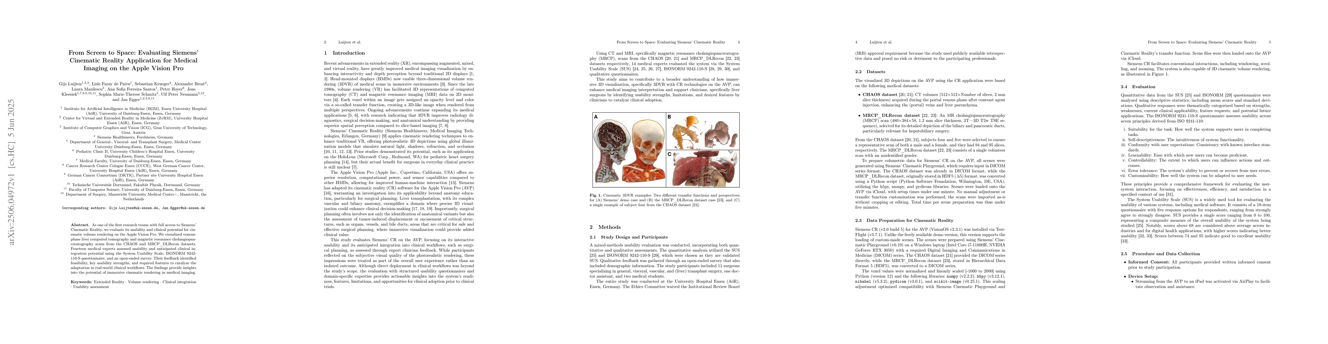 Researchers evaluated Siemens' Cinematic Reality on the Apple Vision Pro for medical imaging, finding it feasible with key usability strengths and identified required features for clinical integration.