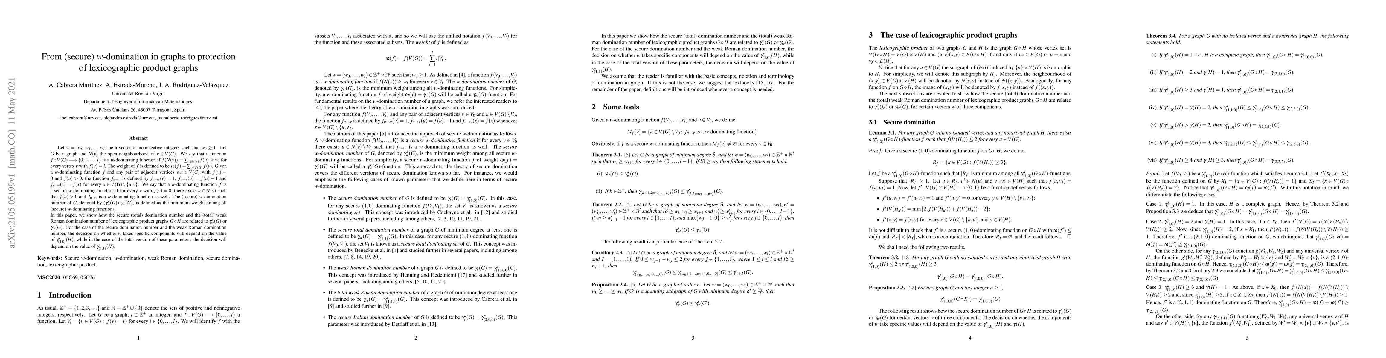 This paper explores the relationship between secure w-domination numbers of lexicographic product graphs and domination numbers in component graphs H, showing how these values affect secure total domination and weak Roman domination numbers.