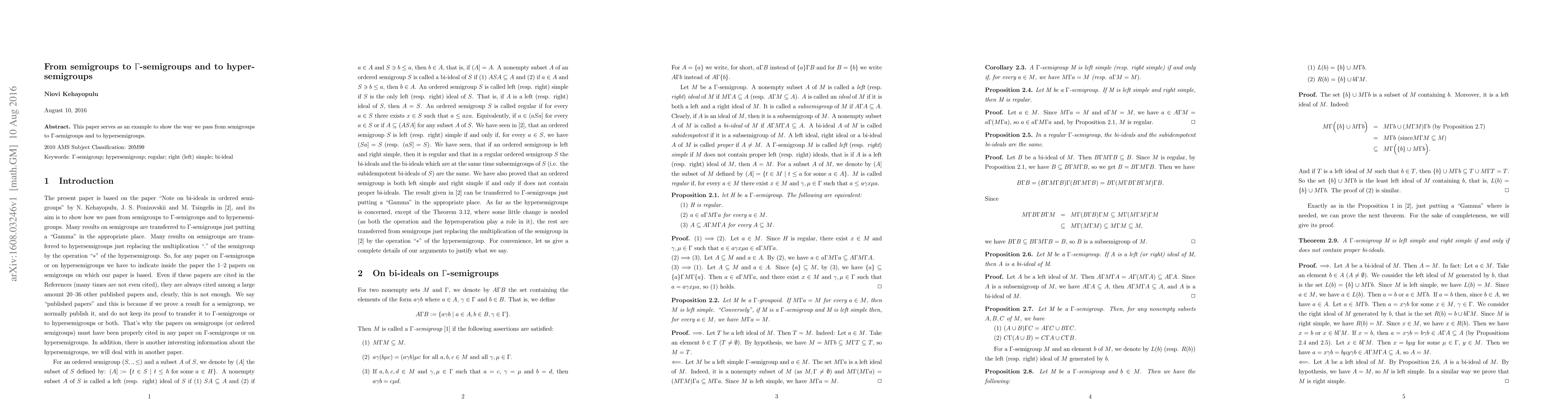 Summary: This paper illustrates the transition from semigroups to $\Gamma$-semigroups and further to hypersemigroups, providing a structured pathway through these algebraic structures. The focus is on the conceptual and mathematical progression between these different types of algebraic systems.