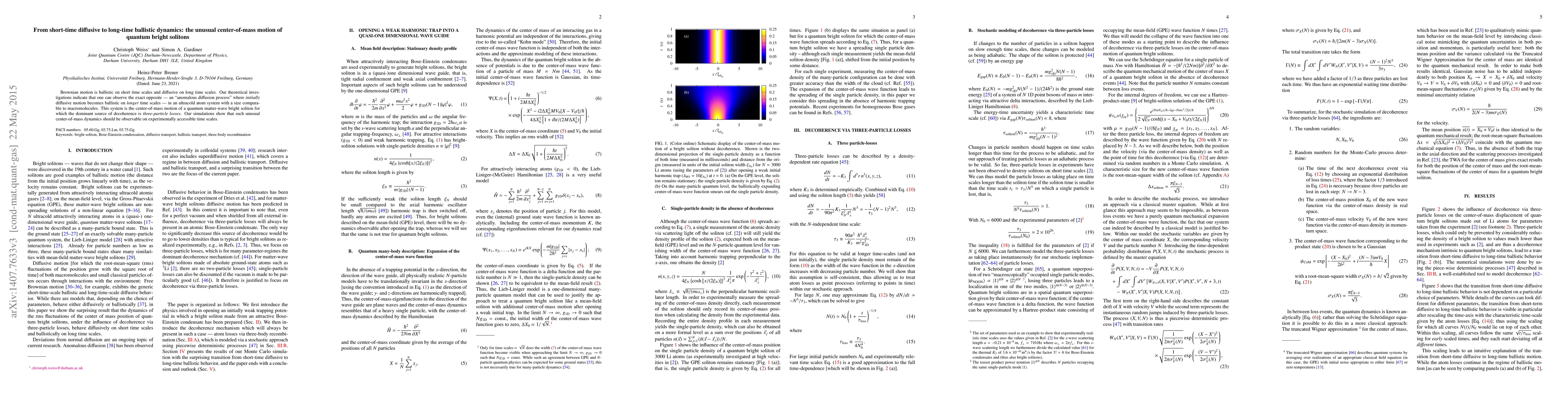 Researchers found that in an ultracold atom system, a quantum bright soliton can exhibit unusual center-of-mass motion where initially diffusive behavior becomes ballistic over longer time scales.