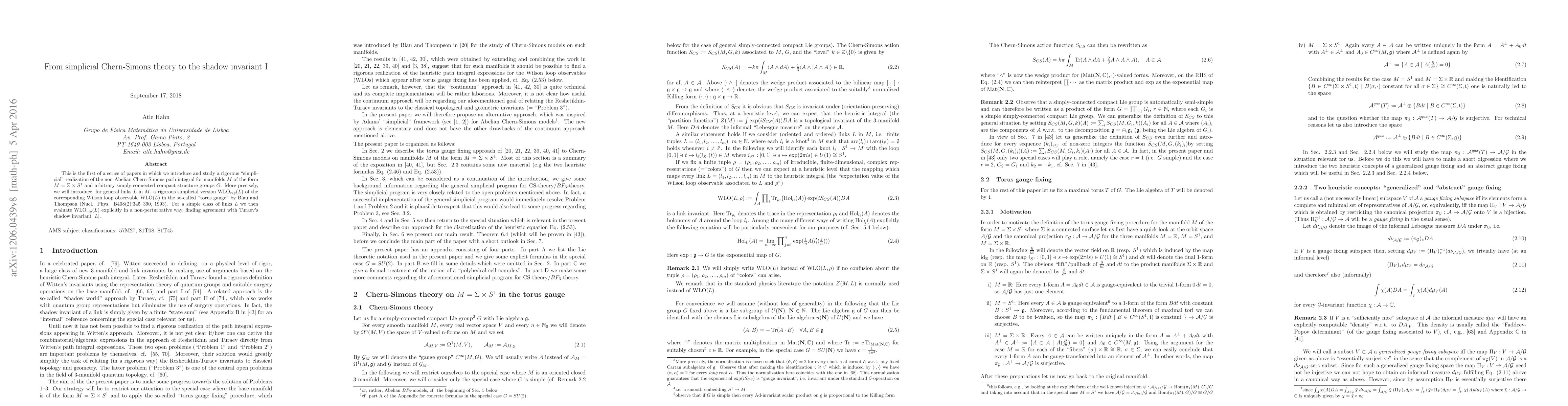 This is the first of a series of papers in which we introduce and study a rigorous "simplicial" realization of the non-Abelian Chern-Simons path integral for manifolds M of the form M = Sigma x S1 and arbitrary simply-connected compact structure groups G. More precisely, we introduce, for general links L in M, a rigorous simplicial version WLO_{rig}(L) of the corresponding Wilson loop observable WLO(L) in the so-called "torus gauge" by Blau and Thompson (Nucl. Phys. B408(2):345-390, 1993). For a simple class of links L we then evaluate WLO_{rig}(L) explicitly in a non-perturbative way, finding agreement with Turaev's shadow invariant |L|.