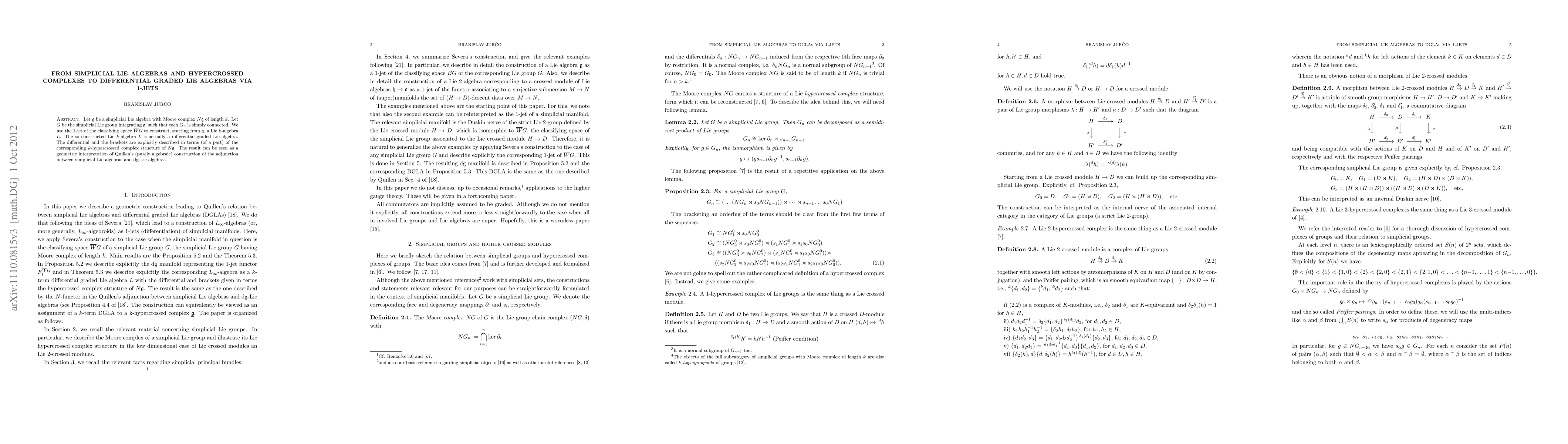 Let g be a simplicial Lie algebra with Moore complex Ng of length k. Let G be the simplicial Lie group integrating g, which is simply connected in each simplicial level. We use the 1-jet of the classifying space of G to construct, starting from g, a Lie k-algebra L. The so constructed Lie k-algebra L is actually a differential graded Lie algebra. The differential and the brackets are explicitly described in terms (of a part) of the corresponding k-hypercrossed complex structure of Ng. The result can be seen as a geometric interpretation of Quillen's (purely algebraic) construction of the adjunction between simplicial Lie algebras and dg-Lie algebras.