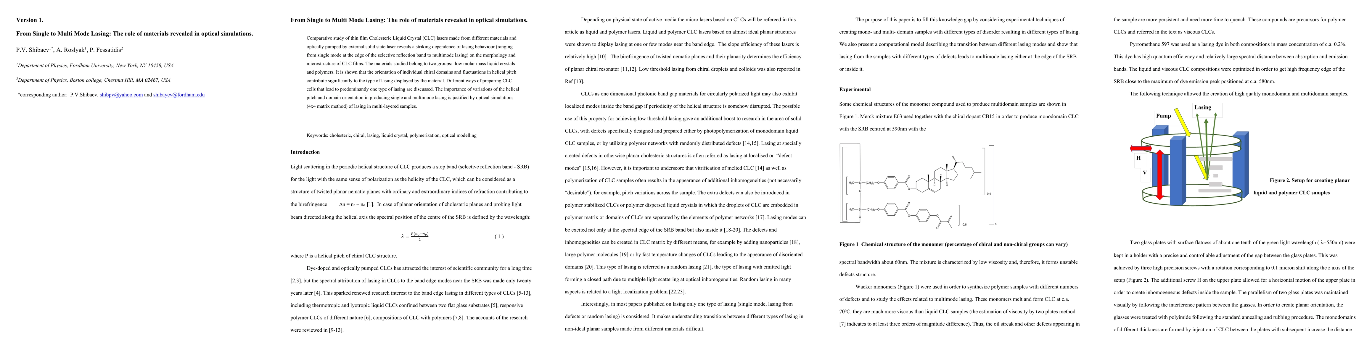 A study on Cholesteric Liquid Crystal lasers reveals that lasing behavior depends on material morphology and microstructure, with different preparations leading to single or multimode lasing.