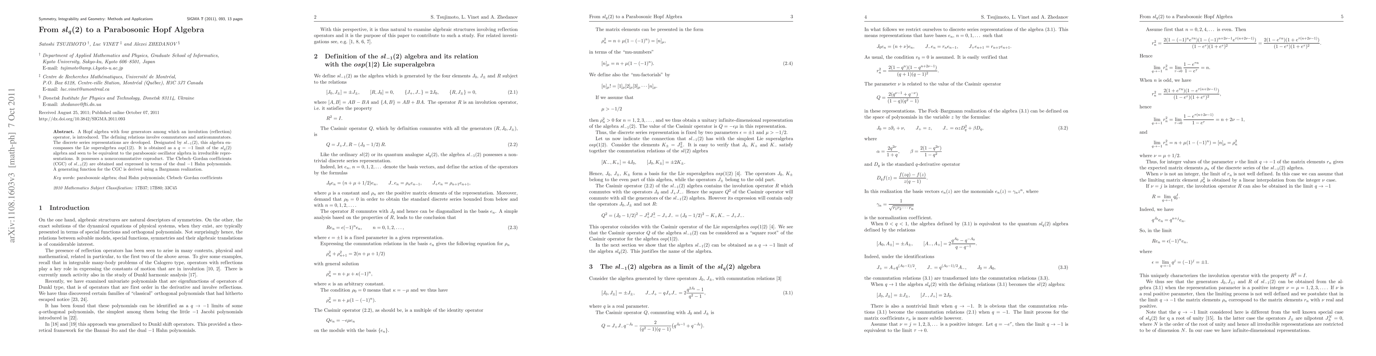 A new Hopf algebra is introduced, derived from $sl_q(2)$ as a $q=-1$ limit, with applications to the Lie superalgebra $osp(1|2)$ and equivalence to the parabosonic oscillator algebra.