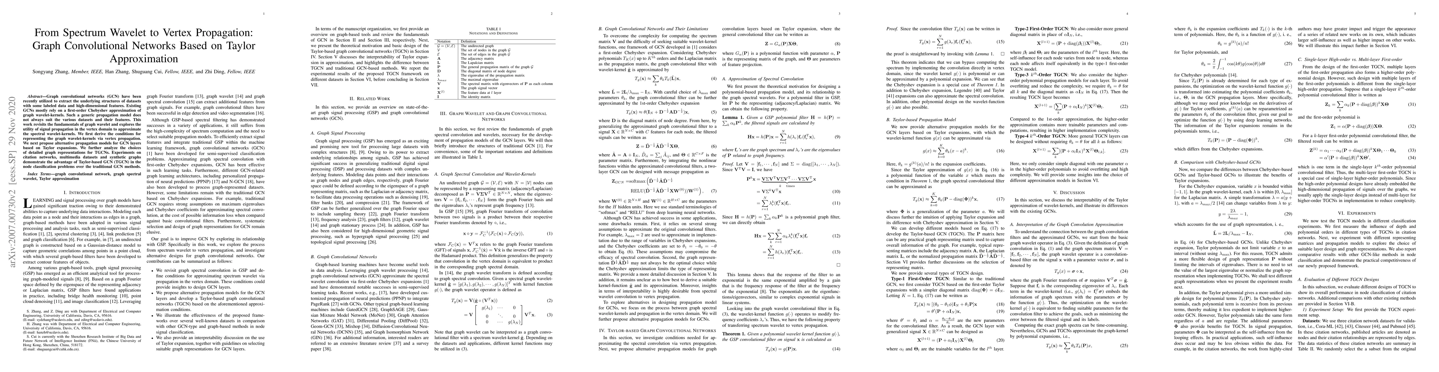 This paper proposes a Taylor expansion-based graph convolutional network (TGCN) that leverages vertex propagation to approximate spectral wavelet kernels, offering a more flexible alternative to traditional first-order Chebyshev approximations. Experiments show that TGCNs outperform conventional GCNs in node classification tasks across various datasets.