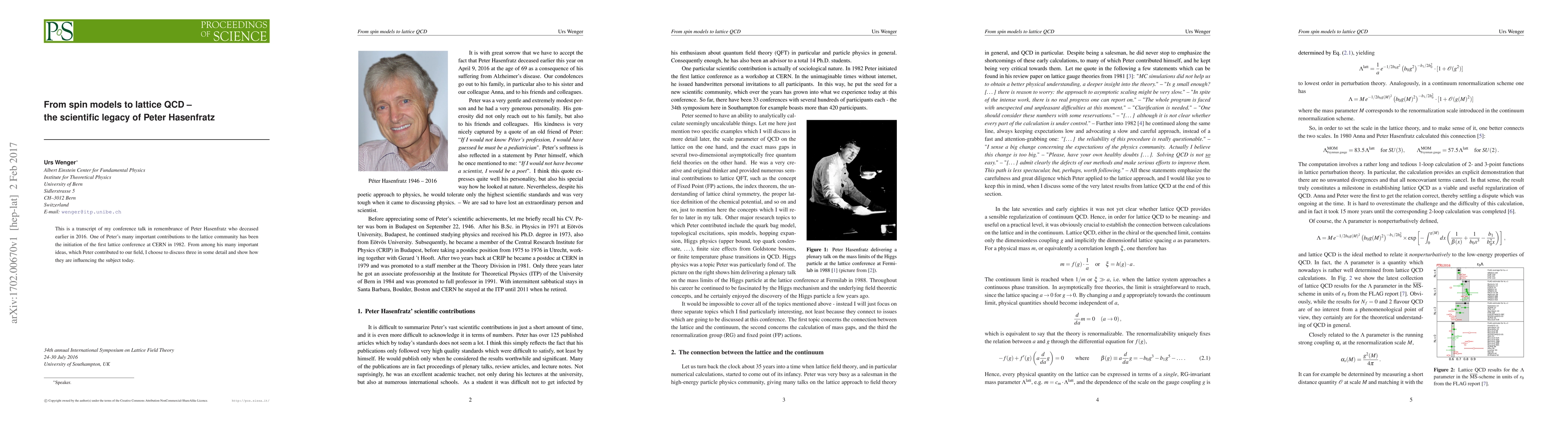 This is a transcript of my conference talk in remembrance of Peter Hasenfratz who deceased earlier in 2016. One of Peter's many important contributions to the lattice community has been the initiation of the first lattice conference at CERN in 1982. From among his many important ideas, which Peter contributed to our field, I choose to discuss three in some detail and show how they are influencing the subject today.