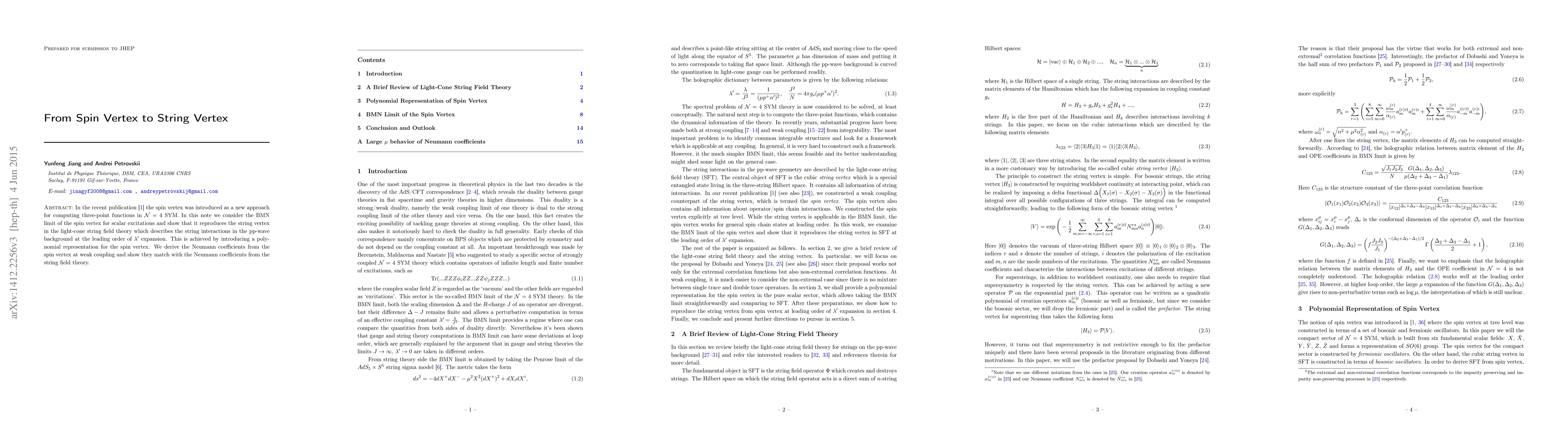 This paper extends the spin vertex approach to the BMN limit for scalar excitations, demonstrating its equivalence to the string vertex in light-cone string field theory for pp-wave background interactions. It introduces a polynomial representation for the spin vertex and confirms matching Neumann coefficients with string field theory at weak coupling.