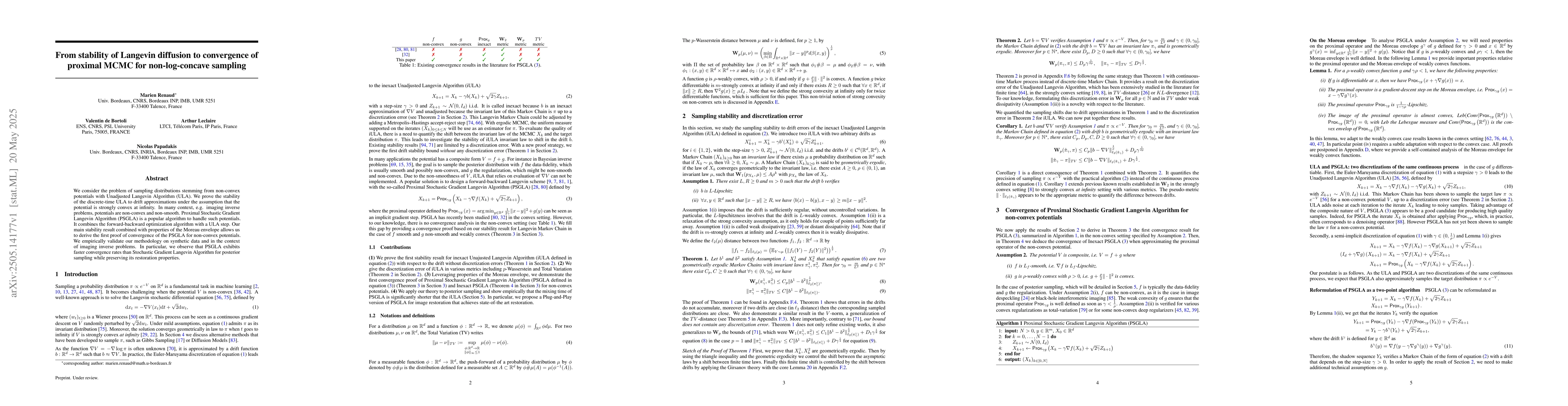Researchers prove stability of Proximal Stochastic Gradient Langevin Algorithm (PSGLA) for non-convex potentials, demonstrating faster convergence rates than traditional algorithms.