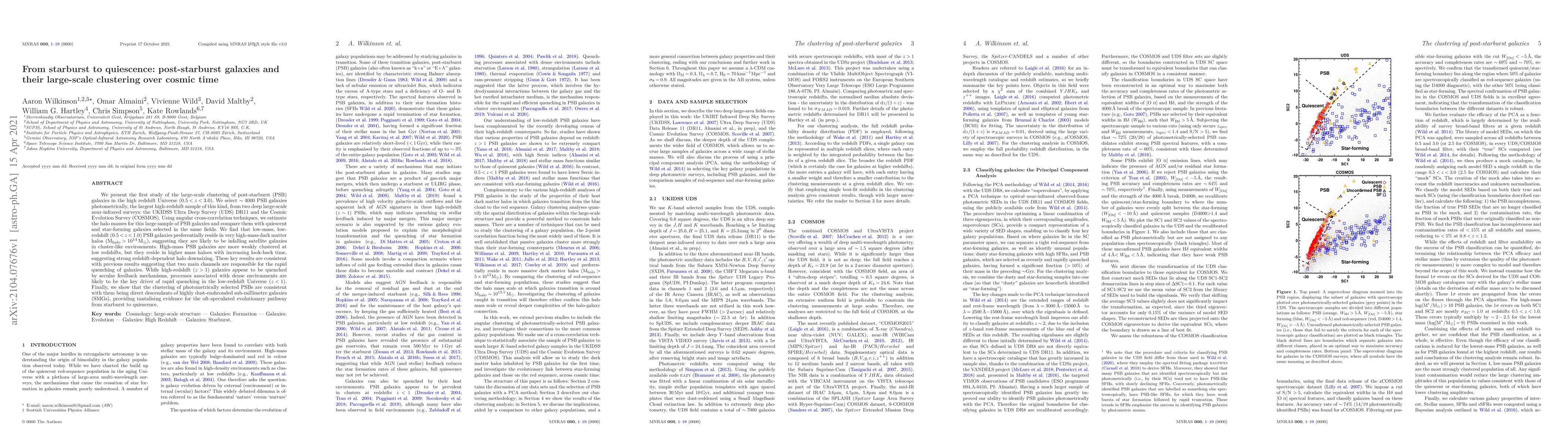 This study investigates the large-scale clustering of post-starburst galaxies (PSBs) at high redshifts, revealing that low-mass, low-redshift PSBs reside in massive dark matter halos, suggesting they are likely infalling satellite galaxies in clusters. High-mass PSBs show strong redshift-dependent halo downsizing, indicating different quenching mechanisms at different redshifts.