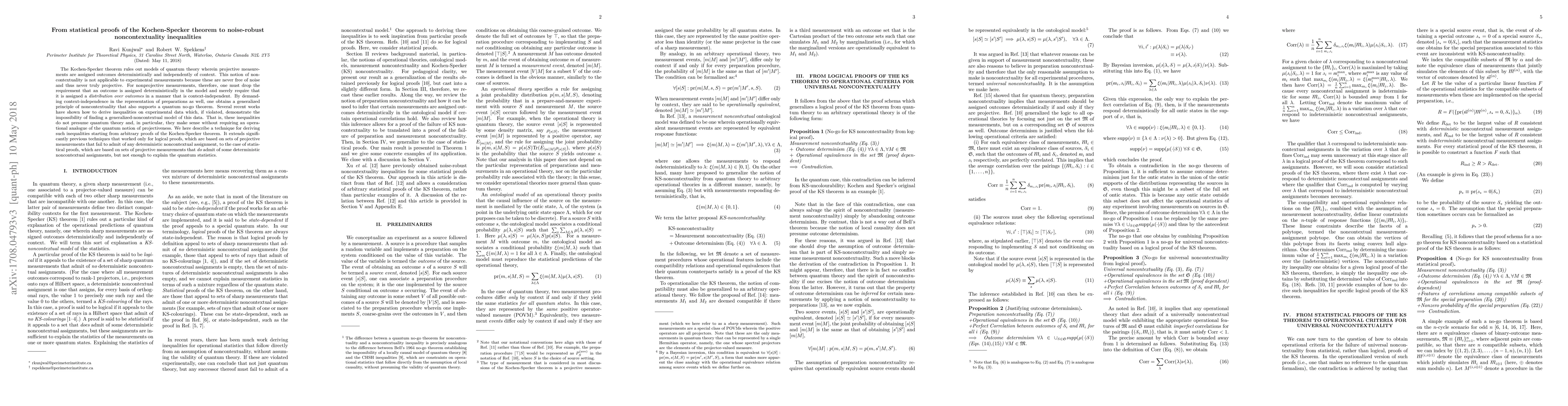 The paper extends the Kochen-Specker theorem's implications to experimental noise, deriving context-independent inequalities from statistical proofs that demonstrate the impossibility of generalized noncontextual models. This provides a framework to assess quantum theory's validity without relying on projectiveness.