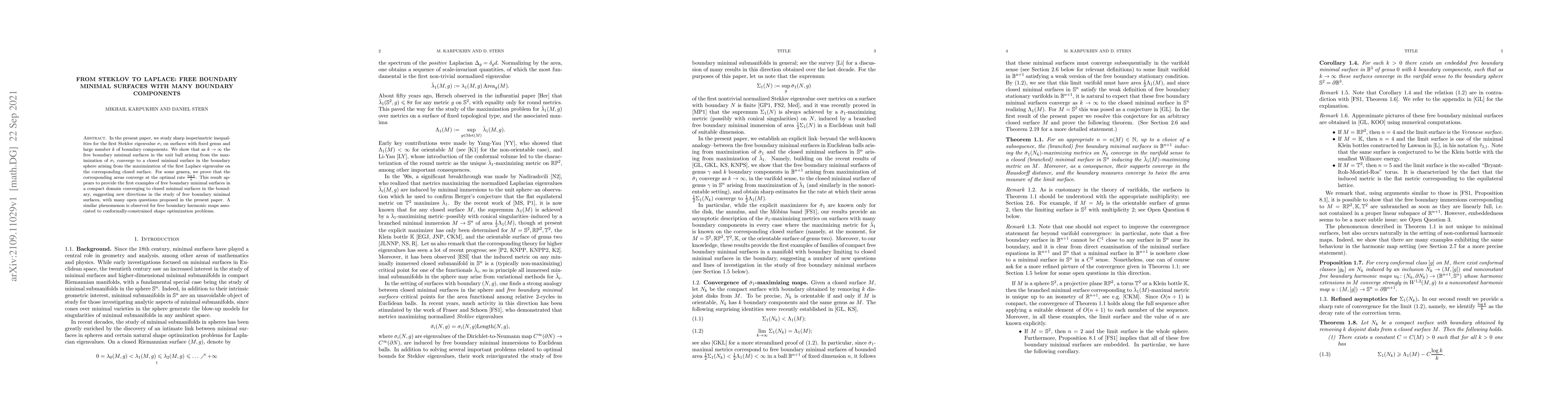 In the present paper, we study sharp isoperimetric inequalities for the first Steklov eigenvalue $\sigma_1$ on surfaces with fixed genus and large number $k$ of boundary components. We show that as $k\to \infty$ the free boundary minimal surfaces in the unit ball arising from the maximization of $\sigma_1$ converge to a closed minimal surface in the boundary sphere arising from the maximization of the first Laplace eigenvalue on the corresponding closed surface. For some genera, we prove that the corresponding areas converge at the optimal rate $\frac{\log k}{k}$. This result appears to provide the first examples of free boundary minimal surfaces in a compact domain converging to closed minimal surfaces in the boundary, suggesting new directions in the study of free boundary minimal surfaces, with many open questions proposed in the present paper. A similar phenomenon is observed for free boundary harmonic maps associated to conformally-constrained shape optimization problems.