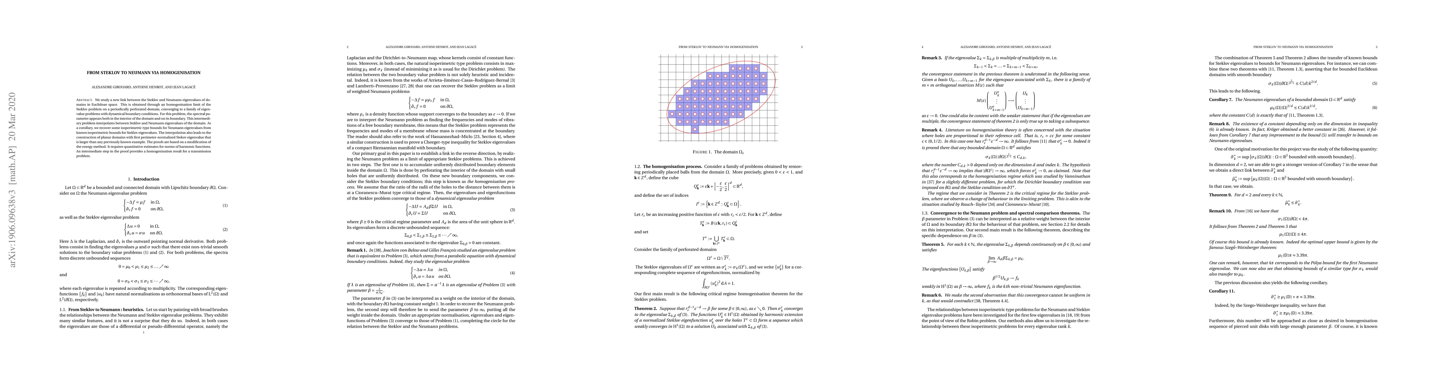 This paper establishes a novel connection between Steklov and Neumann eigenvalues via homogenisation of the Steklov problem on periodically perforated domains, leading to dynamical boundary conditions. It also constructs planar domains with larger first perimeter-normalized Steklov eigenvalues and uses modified energy methods for proofs, including homogenisation results for transmission problems.