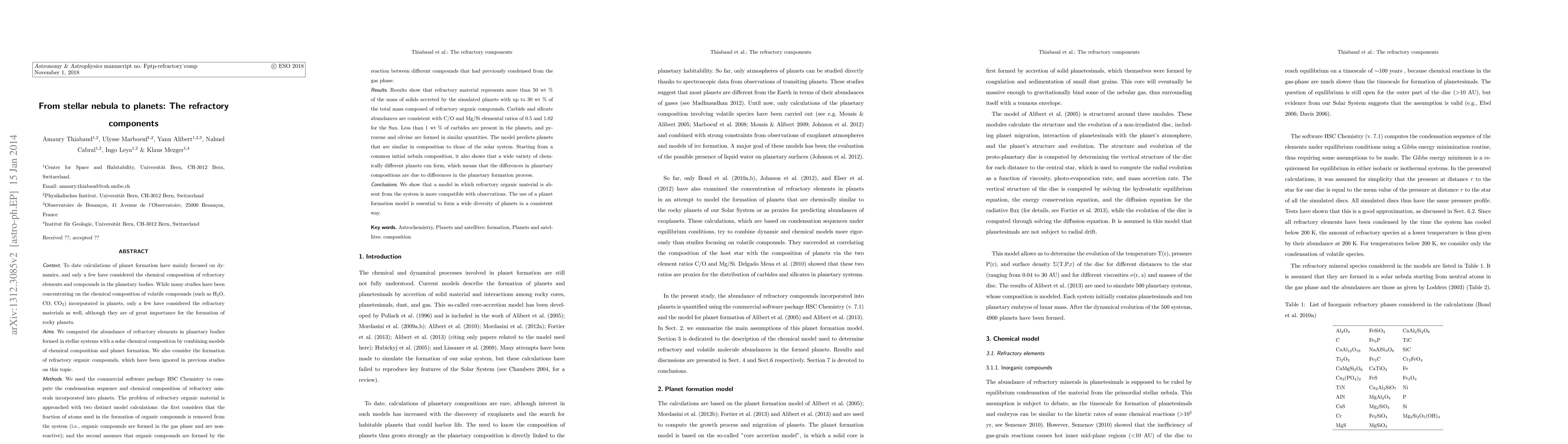This paper investigates the abundance of refractory elements in planetary bodies formed in solar-like stellar systems, incorporating the formation of refractory organic compounds. It shows that refractory materials make up over 50 wt% of planetary solids, with up to 30 wt% being refractory organic compounds, and suggests that the diversity in planetary compositions arises from differences in formation processes.