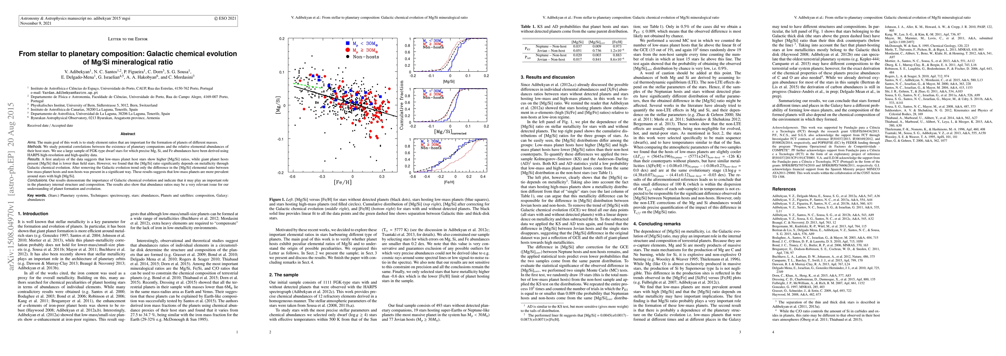 The main goal of this work is to study element ratios that are important for the formation of planets of different masses. We study potential correlations between the existence of planetary companions and the relative elemental abundances of their host stars. We use a large sample of FGK-type dwarf stars for which precise Mg, Si, and Fe abundances have been derived using HARPS high-resolution and high-quality data. A first analysis of the data suggests that low-mass planet host stars show higher [Mg/Si] ratios, while giant planet hosts present [Mg/Si] that is lower than field stars. However, we found that the [Mg/Si] ratio significantly depends on metallicity through Galactic chemical evolution. After removing the Galactic evolution trend only the difference in the [Mg/Si] elemental ratio between low-mass planet hosts and non-hosts was present in a significant way. These results suggests that low-mass planets are more prevalent around stars with high [Mg/Si]. Our results demonstrate the importance of Galactic chemical evolution and indicate that it may play an important role in the planetary internal structure and composition.