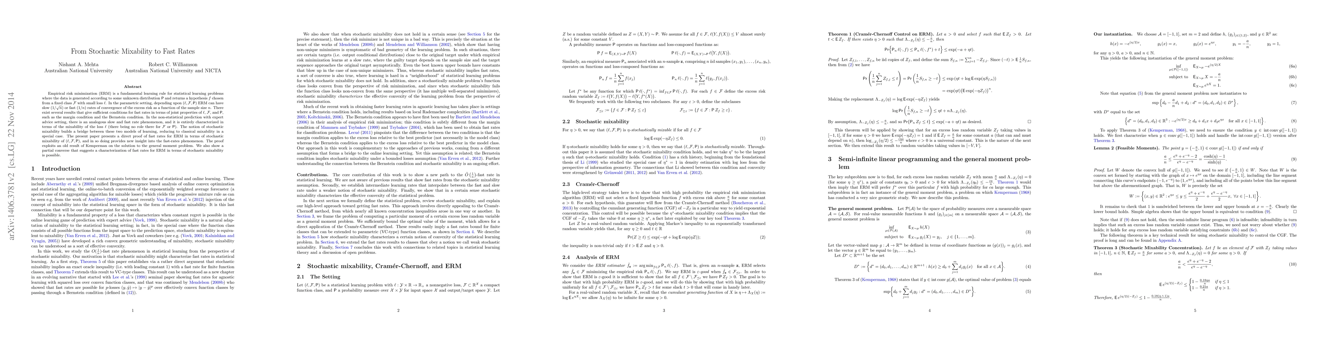 The paper presents a direct proof of fast rates for ERM in terms of stochastic mixability of (ℓ, F, P), exploiting Kemperman's result on the general moment problem.