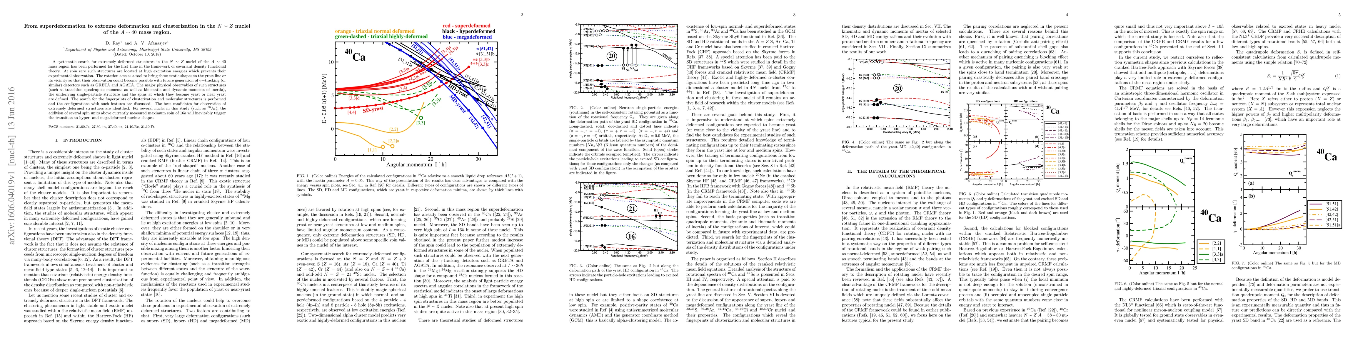 A systematic search for extremely deformed structures in the N~Z nuclei of the A~40 mass region has been performed for the first time in the framework of covariant density functional theory. At spin zero such structures are located at high excitation energies which prevents their experimental observation. The rotation acts as a tool to bring these exotic shapes to the yrast line or its vicinity so that their observation could become possible with future generation of $\gamma-$tracking (or similar) detectors such as GRETA and AGATA. The major physical observables of such structures (such as transition quadrupole moments as well as kinematic and dynamic moments of inertia), the underlying single-particle structure and the spins at which they become yrast or near yrast are defined. The search for the fingerprints of clusterization and molecular structures is performed and the configurations with such features are discussed. The best candidates for observation of extremely deformed structures are identified. For several nuclei in this study (such as $^{36}$Ar), the addition of several spin units above currently measured maximum spin of $16\hbar$ will inevitably trigger the transition to hyper- and megadeformed nuclear shapes.