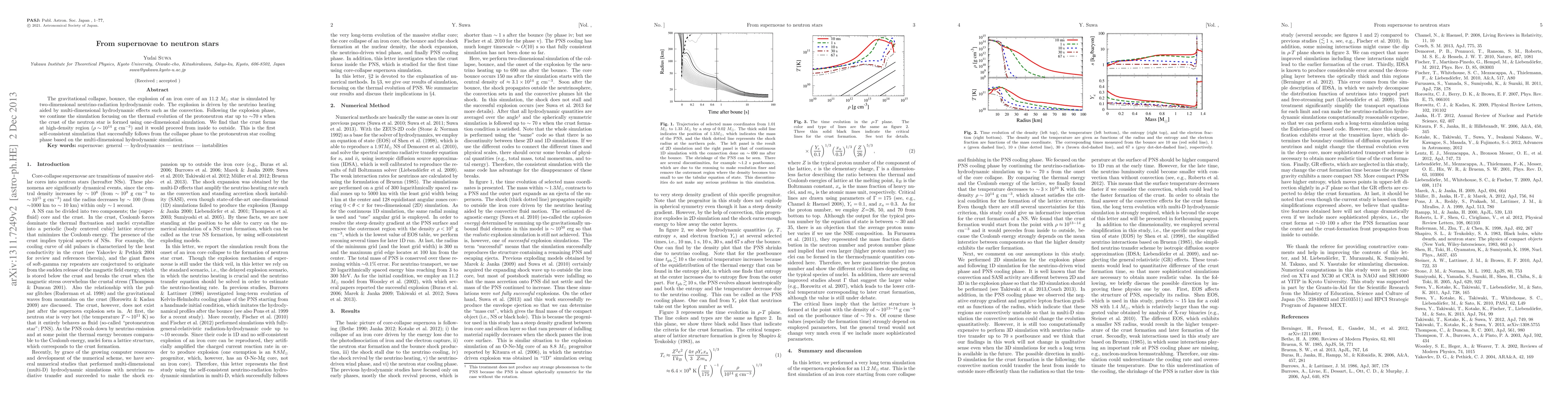The gravitational collapse, bounce, the explosion of an iron core of an 11.2 $M_{\odot}$ star is simulated by two-dimensional neutrino-radiation hydrodynamic code. The explosion is driven by the neutrino heating aided by multi-dimensional hydrodynamic effects such as the convection. Following the explosion phase, we continue the simulation focusing on the thermal evolution of the protoneutron star up to $\sim$70 s when the crust of the neutron star is formed using one-dimensional simulation. We find that the crust forms at high-density region ($\rho\sim10^{14}$ g cm$^{-3}$) and it would proceed from inside to outside. This is the first self-consistent simulation that successfully follows from the collapse phase to the protoneutron star cooling phase based on the multi-dimensional hydrodynamic simulation.