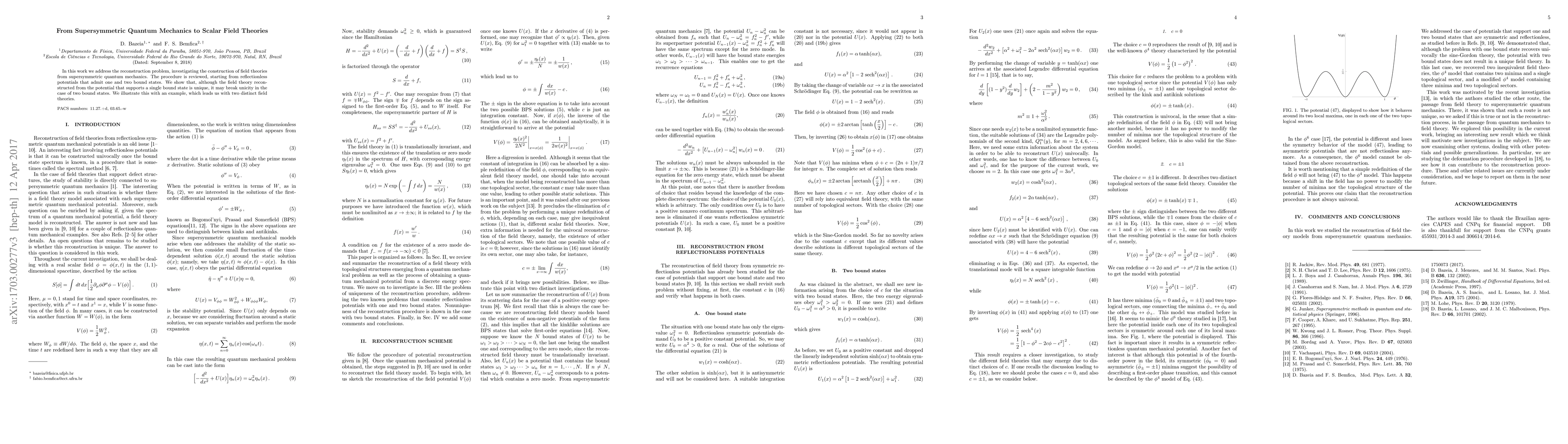 This paper explores the reconstruction of scalar field theories from supersymmetric quantum mechanics, demonstrating that while a single bound state leads to a unique field theory, two bound states can result in multiple distinct field theories. An illustrative example is provided to demonstrate this loss of unicity.