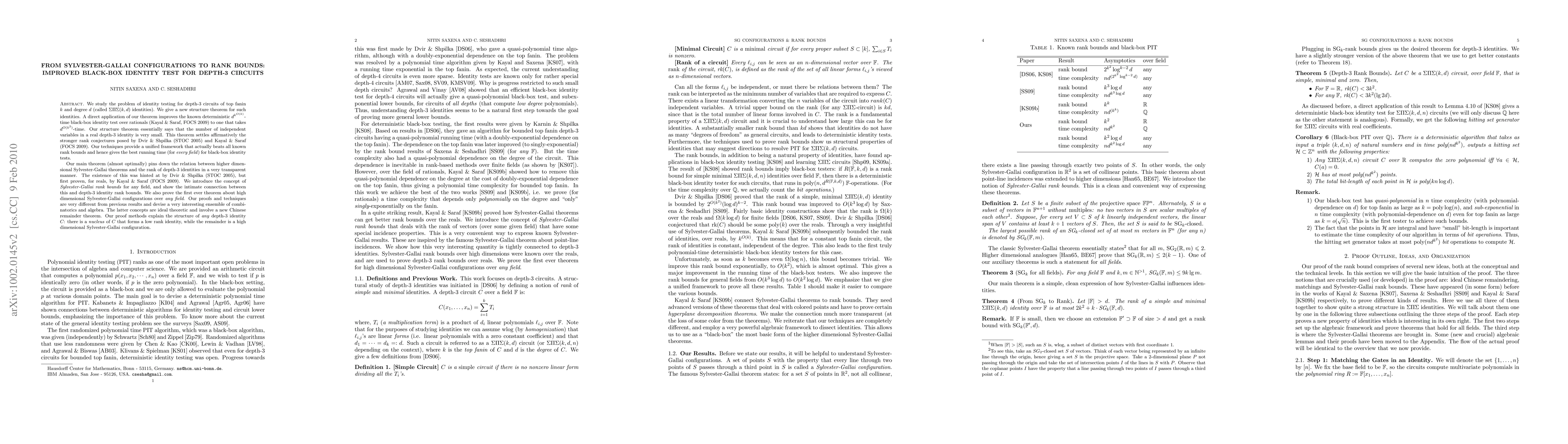 We study the problem of identity testing for depth-3 circuits of top fanin k and degree d. We give a new structure theorem for such identities. A direct application of our theorem improves the known deterministic d^{k^k}-time black-box identity test over rationals (Kayal-Saraf, FOCS 2009) to one that takes d^{k^2}-time. Our structure theorem essentially says that the number of independent variables in a real depth-3 identity is very small. This theorem settles affirmatively the stronger rank conjectures posed by Dvir-Shpilka (STOC 2005) and Kayal-Saraf (FOCS 2009). Our techniques provide a unified framework that actually beats all known rank bounds and hence gives the best running time (for every field) for black-box identity tests. Our main theorem (almost optimally) pins down the relation between higher dimensional Sylvester-Gallai theorems and the rank of depth-3 identities in a very transparent manner. The existence of this was hinted at by Dvir-Shpilka (STOC 2005), but first proven, for reals, by Kayal-Saraf (FOCS 2009). We introduce the concept of Sylvester-Gallai rank bounds for any field, and show the intimate connection between this and depth-3 identity rank bounds. We also prove the first ever theorem about high dimensional Sylvester-Gallai configurations over any field. Our proofs and techniques are very different from previous results and devise a very interesting ensemble of combinatorics and algebra. The latter concepts are ideal theoretic and involve a new Chinese remainder theorem. Our proof methods explain the structure of any depth-3 identity C: there is a nucleus of C that forms a low rank identity, while the remainder is a high dimensional Sylvester-Gallai configuration.