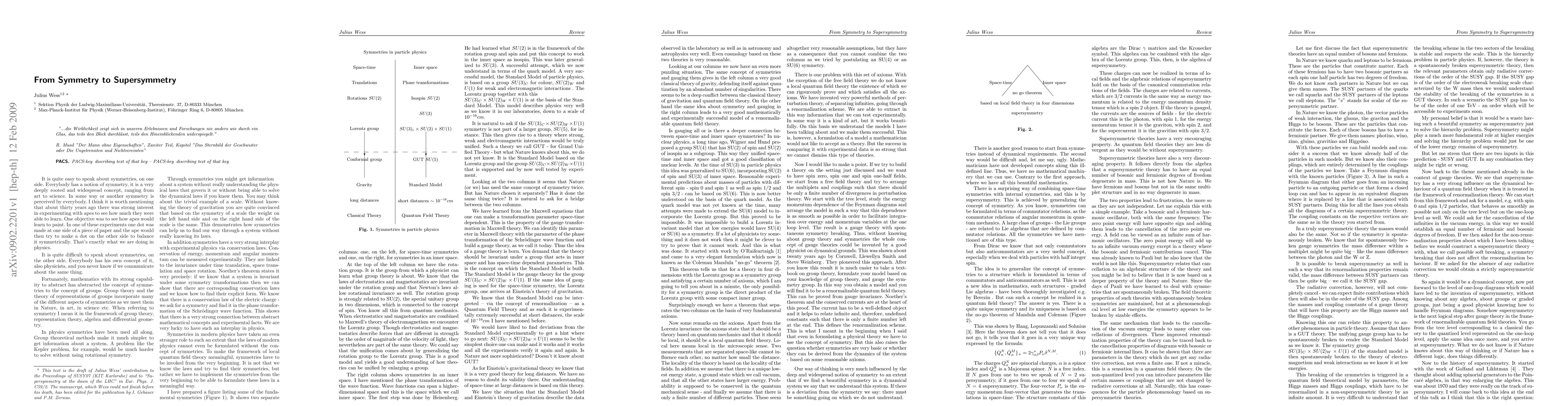 This text is the draft of Julius Wess' contribution to the Proceedings of SUSY07 (KIT Karlsruhe) and to "Supersymmetry at the dawn of the LHC" in Eur. Phys. J. C59/2. The manuscript, which Wess could not finish before his death, has been edited for the publication.