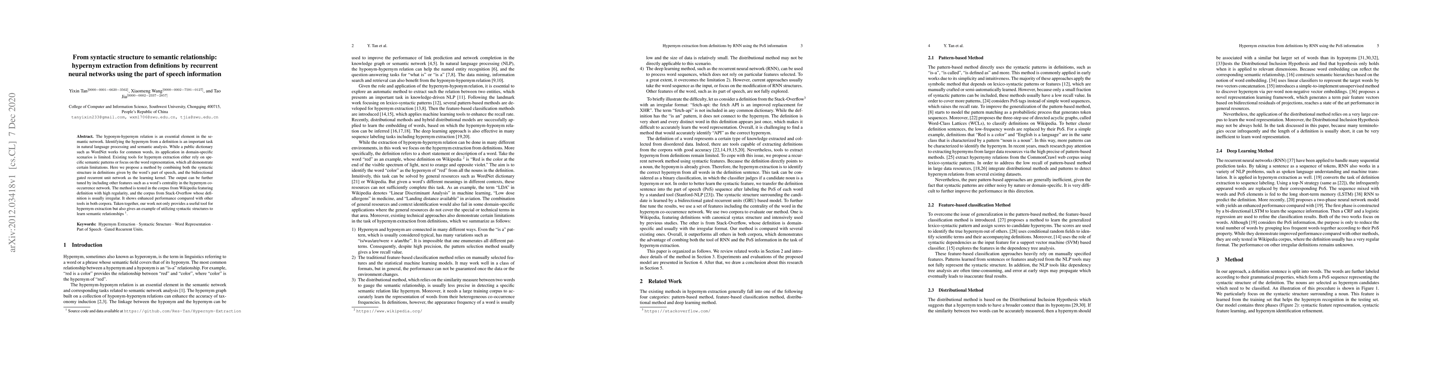 Their approach uses part-of-speech information to better capture semantic relationships, enabling more accurate identification of hypernyms.