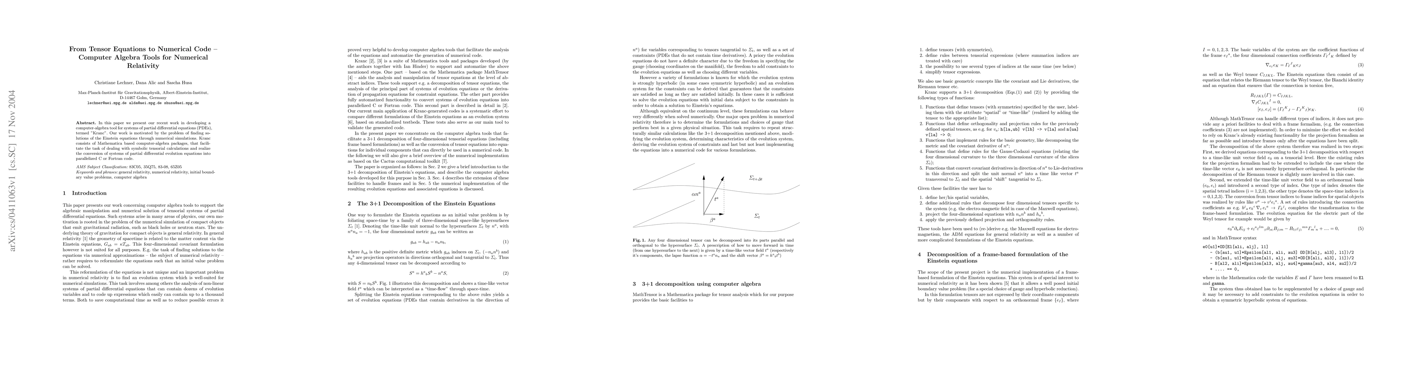 Researchers developed a computer algebra tool called Kranc to simplify numerical simulations of Einstein equations, converting symbolic tensor calculations into parallelized C or Fortran code for faster solving.