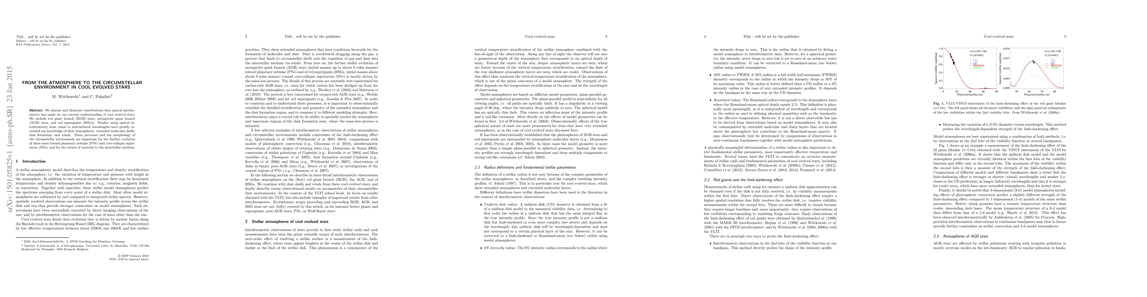 This paper highlights the advancements in understanding cool evolved stars, including RGB, AGB, and RSGs, through optical interferometry. It emphasizes the enhanced knowledge of their atmospheres, molecular shells, dust formation, and winds, crucial for their evolution into planetary nebulae and supernovae.