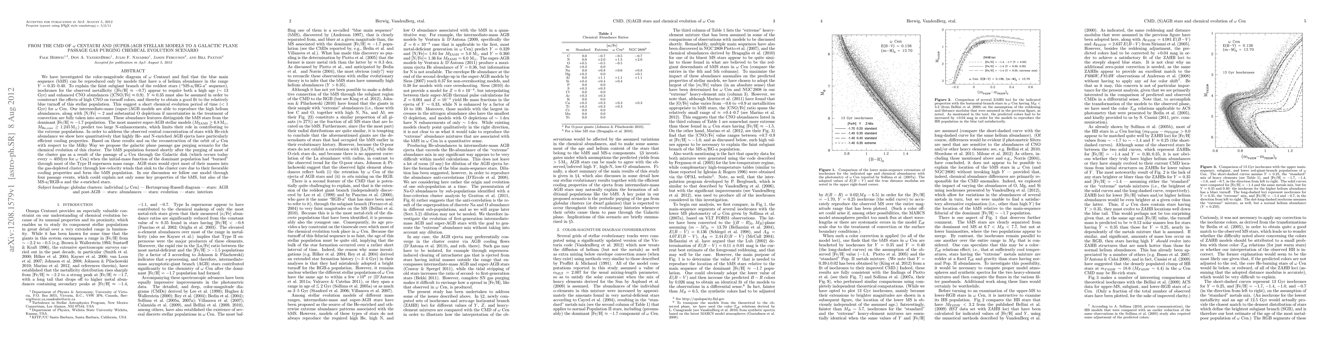 [Abbreviated] We have investigated the color-magnitude diagram of Omega Centauri and find that the blue main sequence (bMS) can be reproduced only by models that have a of helium abundance in the range Y=0.35-$0.40. To explain the faint subgiant branch of the reddest stars ("MS-a/RG-a" sequence), isochrones for the observed metallicity ([Fe/H]\approx0.7) appear to require both a high age (~13Gyr) and enhanced CNO abundances ([CNO/Fe]\approx0.9$). Y~0.35 must also be assumed in order to counteract the effects of high CNO on turnoff colors, and thereby to obtain a good fit to the relatively blue turnoff of this stellar population. This suggest a short chemical evolution period of time (<1Gyr) for Omega Cen. Our intermediate-mass (super-)AGB models are able to reproduce the high helium abundances, along with [N/Fe]~2 and substantial O depletions if uncertainties in the treatment of convection are fully taken into account. These abundance features distinguish the bMS stars from the dominant [Fe/H] $\approx1.7$ population. The most massive super-AGB stellar models (M_zams>=6.8M_sun, M_He,core>=1.245M_sun) predict too large N-enhancements, which limits their role in contributing to the extreme populations. We show quantitatively that highly He- and N-enriched AGB ejecta have particularly efficient cooling properties. Based on these results and on the reconstruction of the orbit of Omega Cen with respect to the Milky Way we propose the galactic plane passage gas purging scenario for the chemical evolution of this cluster. Our model addresses the formation and properties of the bMS population (including their central location in the cluster). We follow our model descriptively through four passage events, which could explain not only some key properties of the bMS, but also of the MS-a/RGB-a and the s-enriched stars.