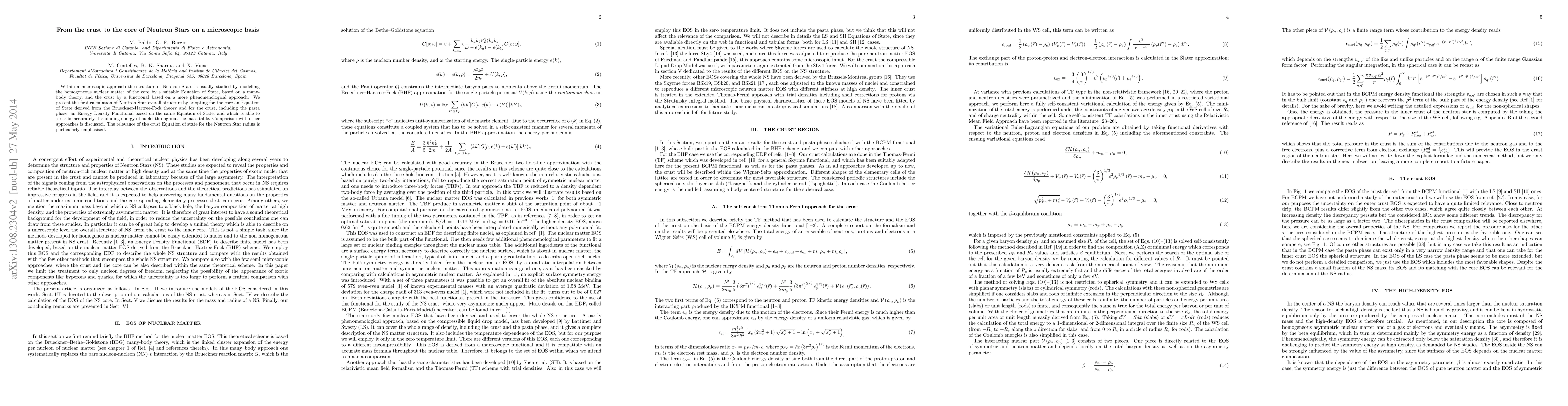 Within a microscopic approach the structure of Neutron Stars is usually studied by modelling the homogeneous nuclear matter of the core by a suitable Equation of State, based on a many-body theory, and the crust by a functional based on a more phenomenological approach. We present the first calculation of Neutron Star overall structure by adopting for the core an Equation of State derived from the Brueckner-Hartree-Fock theory and for the crust, including the pasta phase, an Energy Density Functional based on the same Equation of State, and which is able to describe accurately the binding energy of nuclei throughout the mass table. Comparison with other approaches is discussed. The relevance of the crust Equation of state for the Neutron Star radius is particularly emphasised.