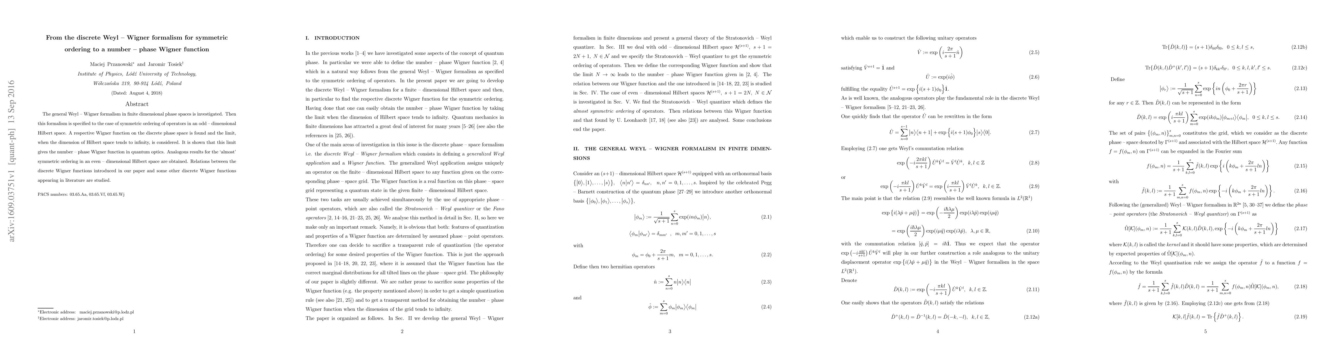 This paper investigates the Weyl-Wigner formalism for symmetric ordering in odd-dimensional Hilbert spaces, deriving a discrete Wigner function, and explores its limit as the space dimension approaches infinity, resulting in the number-phase Wigner function used in quantum optics. It also examines analogous results for symmetric ordering in even dimensions and discusses connections with other discrete Wigner functions in the literature.