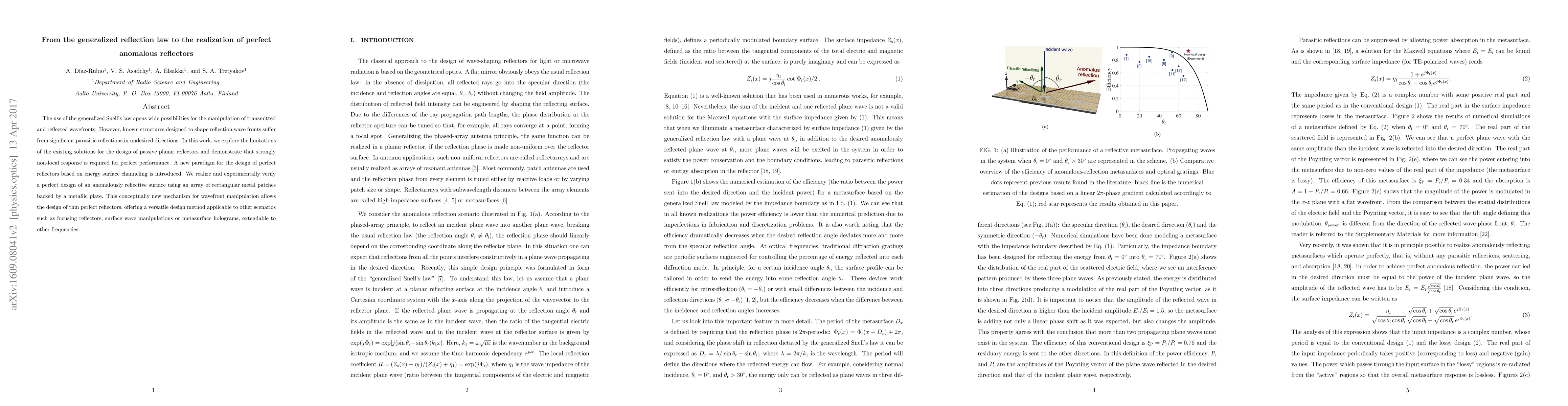 This paper addresses the limitations of existing passive planar reflectors, demonstrating that perfect anomalous reflectors require strongly non-local responses. The authors introduce a new paradigm based on energy surface channeling, realizing and experimentally verifying a perfect reflective surface using an array of metal patches.