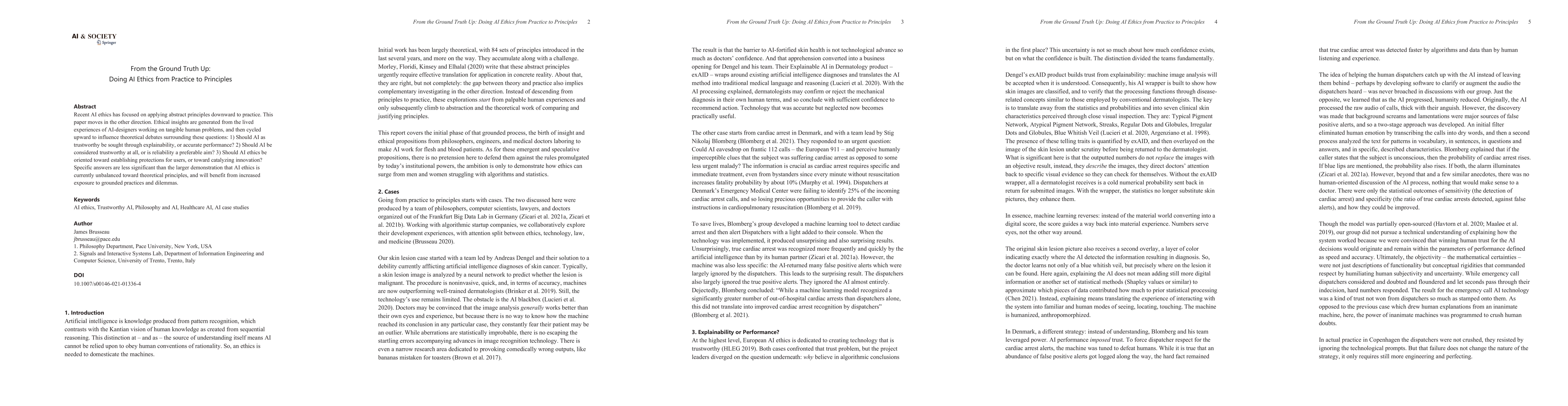 Recent AI ethics has focused on applying abstract principles downward to practice. This paper moves in the other direction. Ethical insights are generated from the lived experiences of AI-designers working on tangible human problems, and then cycled upward to influence theoretical debates surrounding these questions: 1) Should AI as trustworthy be sought through explainability, or accurate performance? 2) Should AI be considered trustworthy at all, or is reliability a preferable aim? 3) Should AI ethics be oriented toward establishing protections for users, or toward catalyzing innovation? Specific answers are less significant than the larger demonstration that AI ethics is currently unbalanced toward theoretical principles, and will benefit from increased exposure to grounded practices and dilemmas.