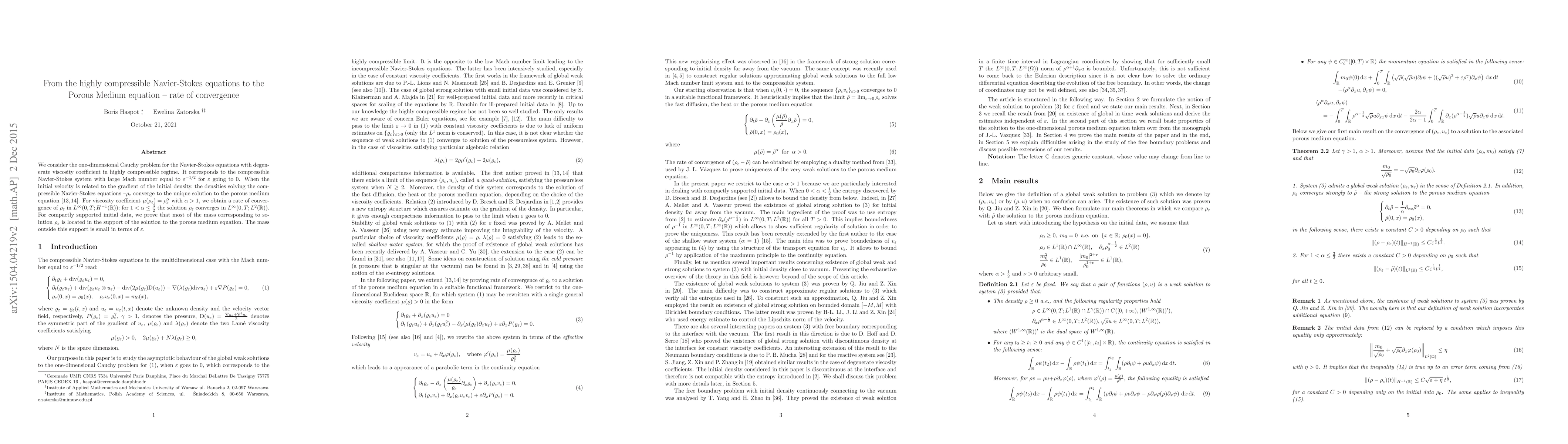 We consider the one-dimensional Cauchy problem for the Navier-Stokes equations with degenerate viscosity coefficient in highly compressible regime. It corresponds to the compressible Navier-Stokes system with large Mach number equal to $\frac{1}{\sqrt{\varepsilon}}$ for $\varepsilon$ going to $0$. When the initial velocity is related to the gradient of the initial density, a solution to the continuity equation-$\rho_\varepsilon$ converges to the unique solution to the porous medium equation [13,14]. For viscosity coefficient $\mu(\rho_\varepsilon)=\rho_\varepsilon^\alpha$ with $\alpha>1$, we obtain a rate of convergence of $\rho_\varepsilon$ in $L^\infty(0,T; H^{-1}(\mathbb{R}))$; for $1<\alpha\leq\frac{3}{2}$ the solution $\rho_\varepsilon$ converges in $L^\infty(0,T;L^2(\mathbb{R}))$. For compactly supported initial data, we prove that most of the mass corresponding to solution $\rho_\varepsilon$ is located in the support of the solution to the porous medium equation. The mass outside this support is small in terms of $\varepsilon$.