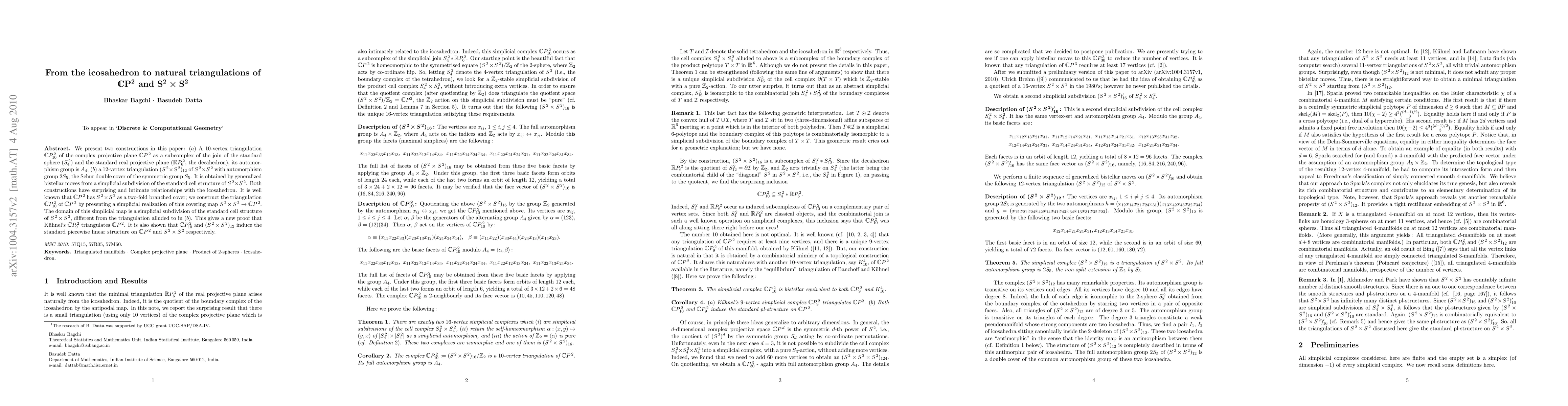 This paper presents two triangulations: a 10-vertex triangulation of $\CC P^{2}$ with $A_4$ automorphisms, and a 12-vertex triangulation of $S^{2} \times S^{2}$ with $2S_5$ automorphisms. Both are intricately linked to the icosahedron and provide new proofs of existing triangulations.