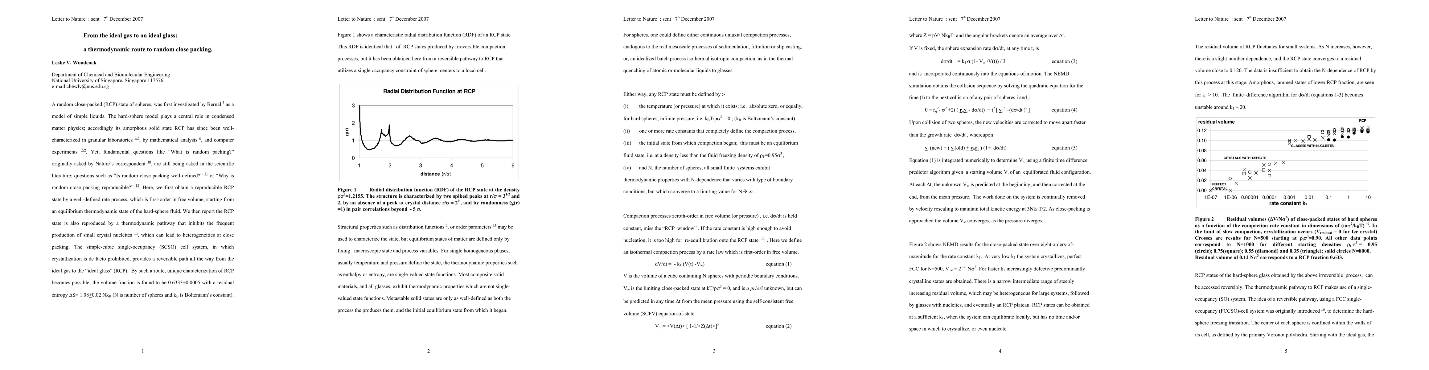 A reproducible RCP state is obtained by a well-defined rate process, which is first-order in free volume, starting from an equilibrium thermodynamic state of the hard-sphere fluid. The RCP state is also reproduced by a thermodynamic pathway that inhibits the frequent production of small crystal nucleites which can lead to heterogeneities at close packing. The simple-cubic single-occupancy (SCSO) cell system, in which crystallization is de facto prohibited, provides a reversible path all the way from the ideal gas to the ideal glass (RCP). By such a route, unique characterization of RCP becomes possible.