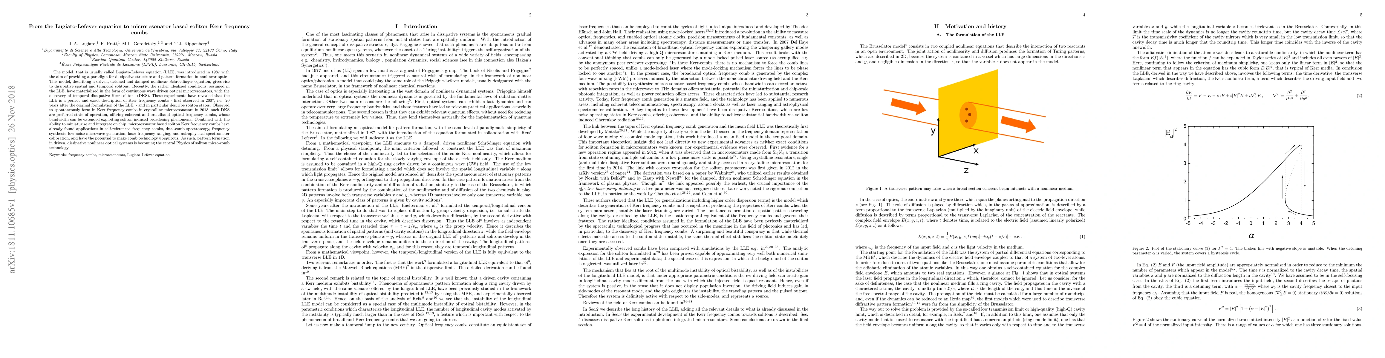 The Lugiato-Lefever equation (LLE) models dissipative structures and soliton formation in nonlinear optics, and recent advancements in microresonators have realized the LLE’s predictions, leading to the discovery of Kerr solitons in frequency combs. These solitons enable coherent, broadband optical frequency combs with potential applications in various fields.