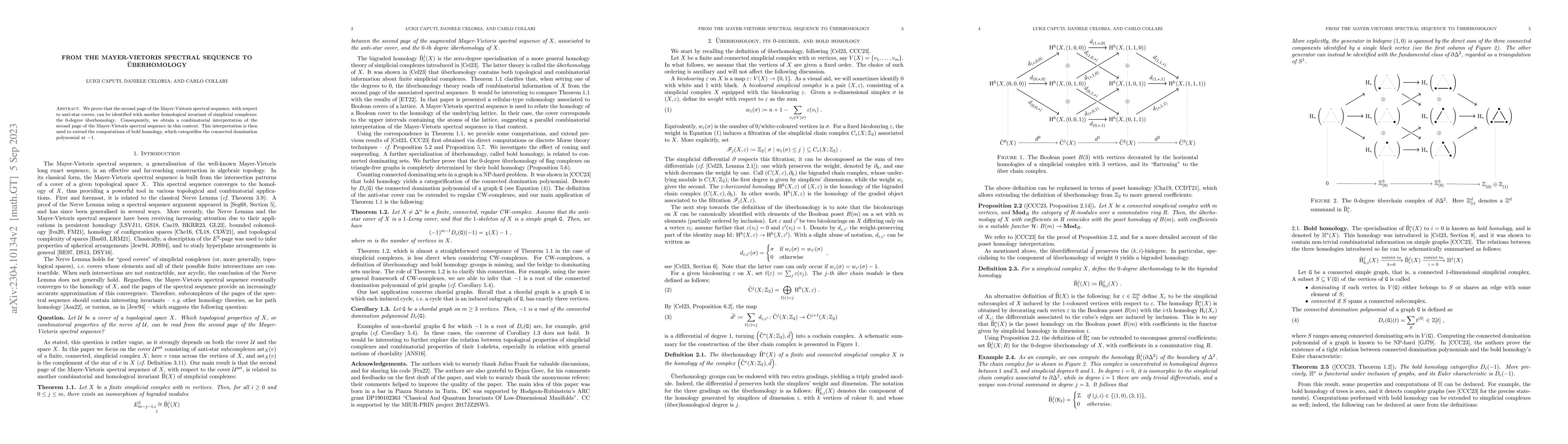This paper establishes an equivalence between the second page of the Mayer-Vietoris spectral sequence and the $0$-degree "uberhomology of simplicial complexes, providing a combinatorial interpretation. It uses this to extend computations of bold homology, which relates to the connected domination polynomial.