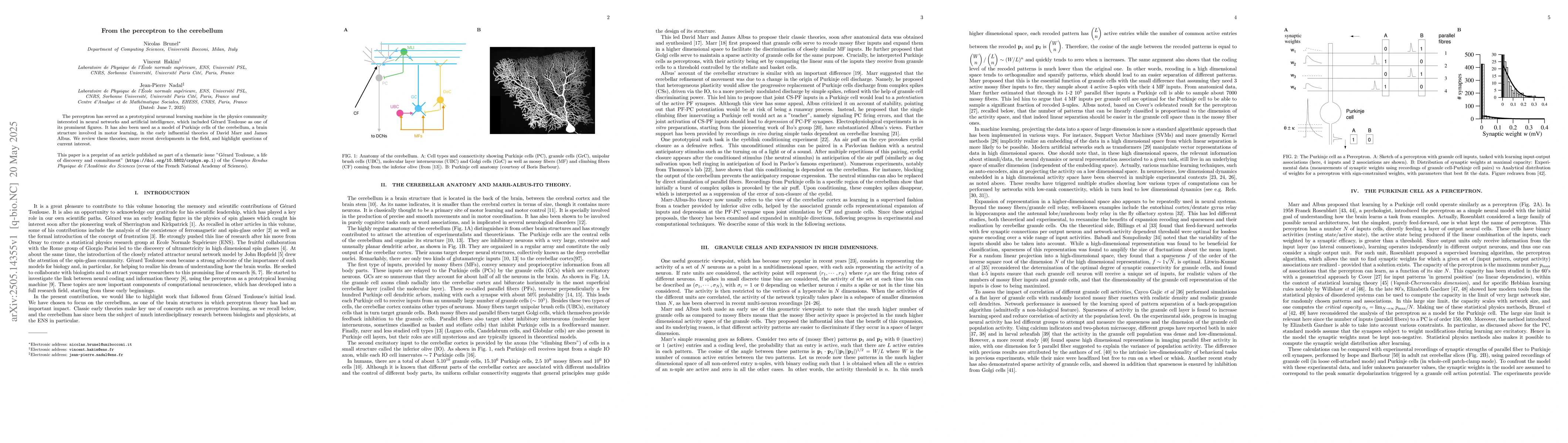 The paper reviews existing theories and recent developments, focusing on the perceptron's role as a model for Purkinje cells in cerebellar motor learning theories.