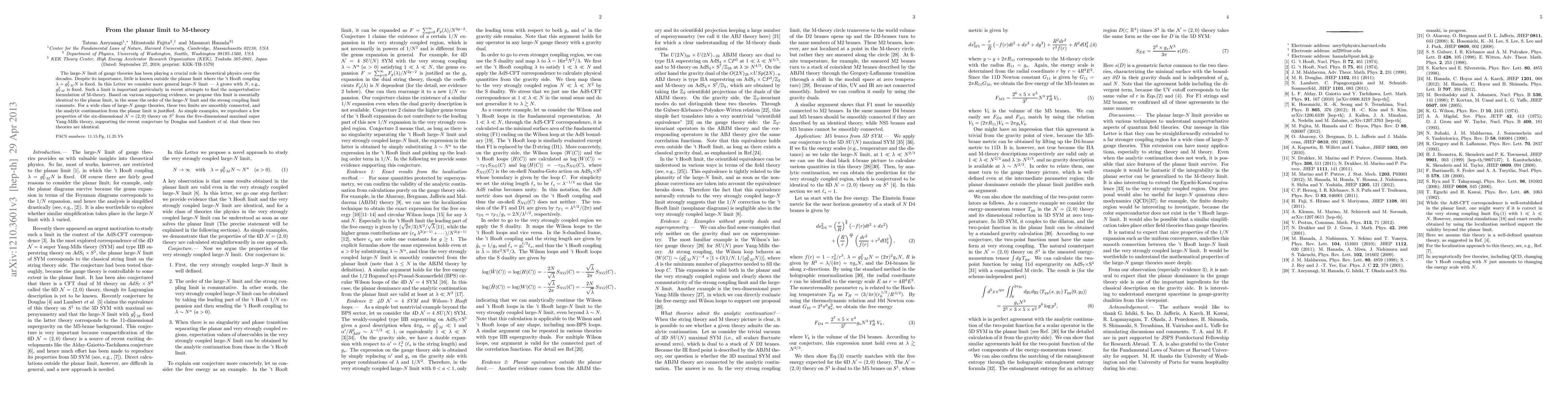 The large-N limit of gauge theories has been playing a crucial role in theoretical physics over the decades. Despite its importance, little is known outside the planar limit where the 't Hooft coupling $\lambda=g_{YM}^2N$ is fixed. In this Letter we consider more general large-N limit --- $\lambda$ grows with N, e.g., $g_{YM}^2$ is fixed. Such a limit is important particularly in recent attempts to find the nonpertubative formulation of M-theory. Based on various supporting evidence, we propose this limit is essentially identical to the planar limit, in the sense the order of the large-N limit and the strong coupling limit commute. For a wide class of large-N gauge theories, these two limits are smoothly connected, and the analytic continuation from the planar limit is justified. As simple examples, we reproduce a few properties of the six-dimensional N=(2, 0) theory on S^1 from the five-dimensional maximal super Yang-Mills theory, supporting the recent conjecture by Douglas and Lambert et al. that these two theories are identical.