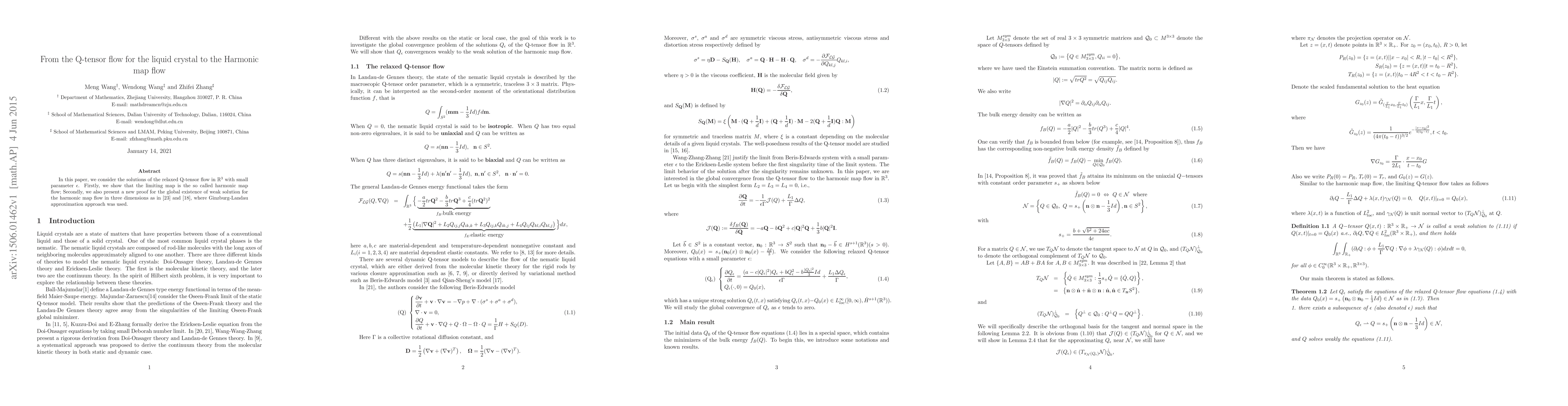 In this paper, we consider the solutions of the relaxed Q-tensor flow in $\R^3$ with small parameter $\epsilon$. Firstly, we show that the limiting map is the so called harmonic map flow; Secondly, we also present a new proof for the global existence of weak solution for the harmonic map flow in three dimensions as in \cite{struwe88} and \cite{keller}, where Ginzburg-Landau approximation approach was used.