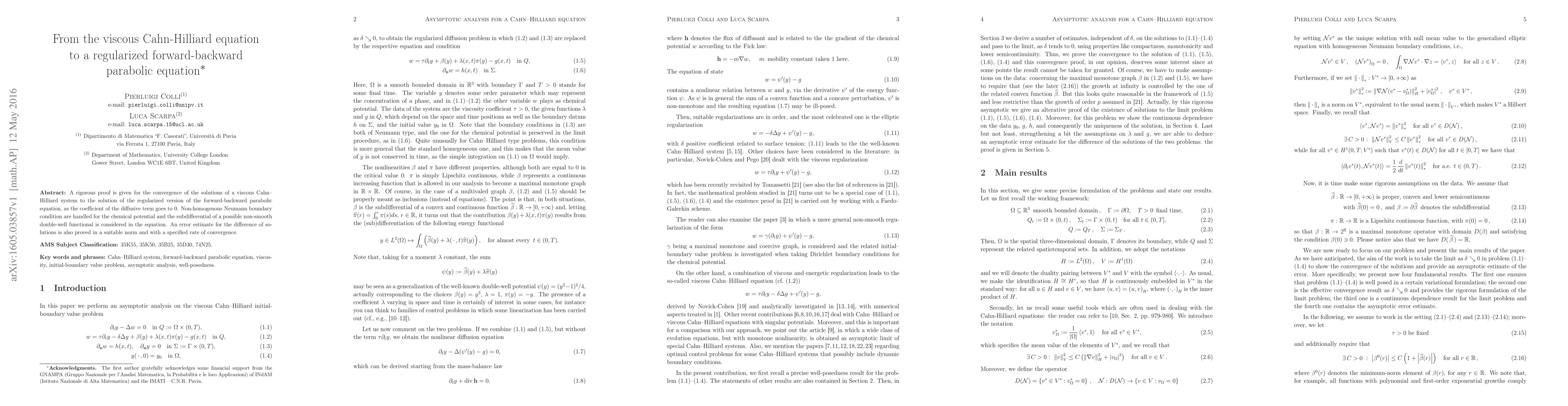 A proof is given for the convergence of solutions to a regularized version of the forward-backward parabolic equation as the diffusive term coefficient goes to zero, with error estimates and handling of non-homogeneous Neumann boundary conditions.