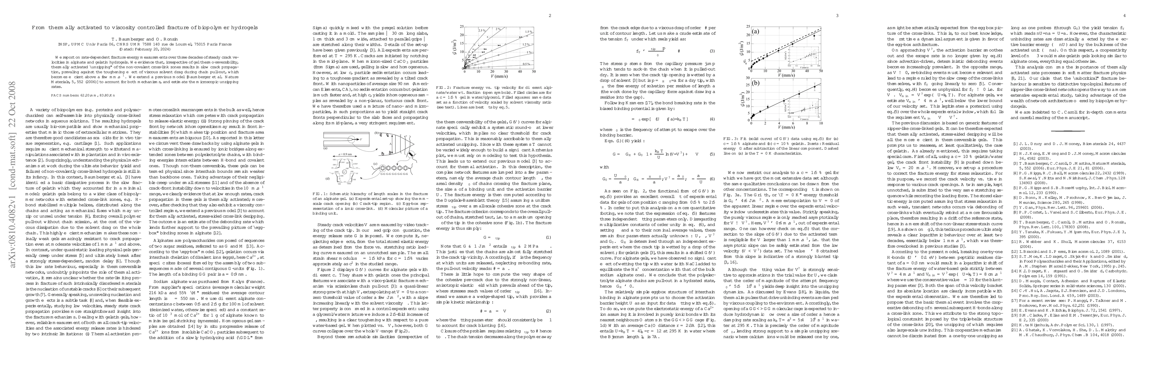 This study investigates the fracture mechanics of biopolymer hydrogels, showing that slow crack propagation is due to thermally activated "unzipping" of cross-links, while viscous solvent drag becomes significant at higher crack velocities. The research extends a prior model to incorporate both mechanisms and estimates the microscopic unzipping rates.