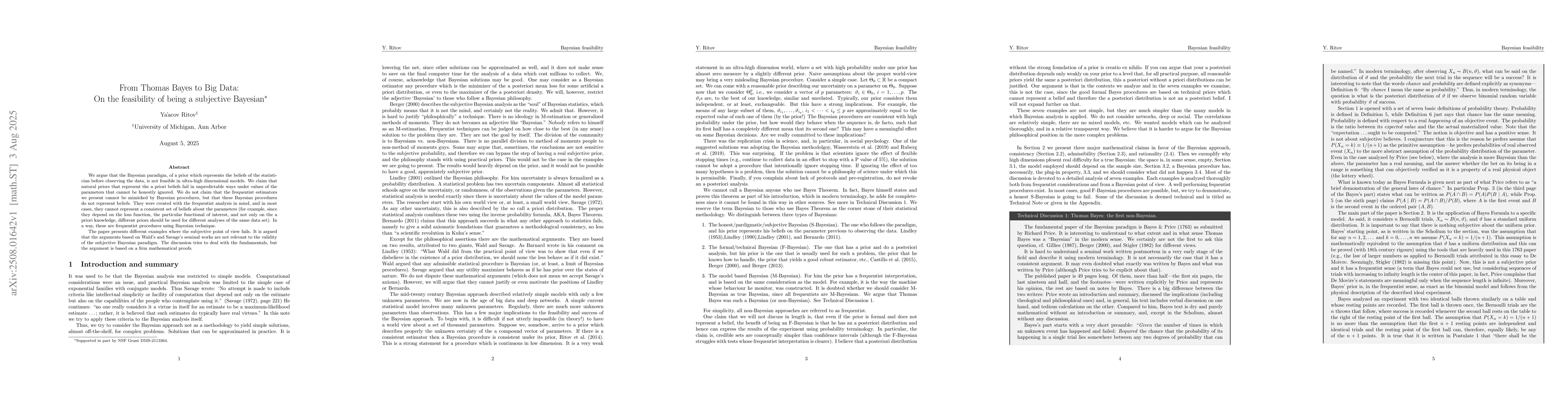 We argue that the Bayesian paradigm, of a prior which represents the beliefs of the statistician before observing the data, is not feasible in ultra-high-dimensional models. We claim that natural priors that represent the a priori beliefs fail in unpredictable ways under values of the parameters that cannot be honestly ignored. We do not claim that the frequentist estimators we present cannot be mimicked by Bayesian procedures, but that these Bayesian procedures do not represent beliefs. They were created with the frequentist analysis in mind, and in most cases, they cannot represent a consistent set of beliefs about the parameters (for example, since they depend on the loss function, the particular functional of interest, and not only on the a priori knowledge, different priors should be used for different analyses of the same data set). In a way, these are frequentist procedures using a Bayesian technique. The paper presents different examples where the subjective point of view fails. It is argued that the arguments based on Wald's and Savage's seminal works are not relevant to the validity of the subjective Bayesian paradigm. The discussion tries to deal with the fundamentals, but the argument is based on a firm mathematical proofs.
