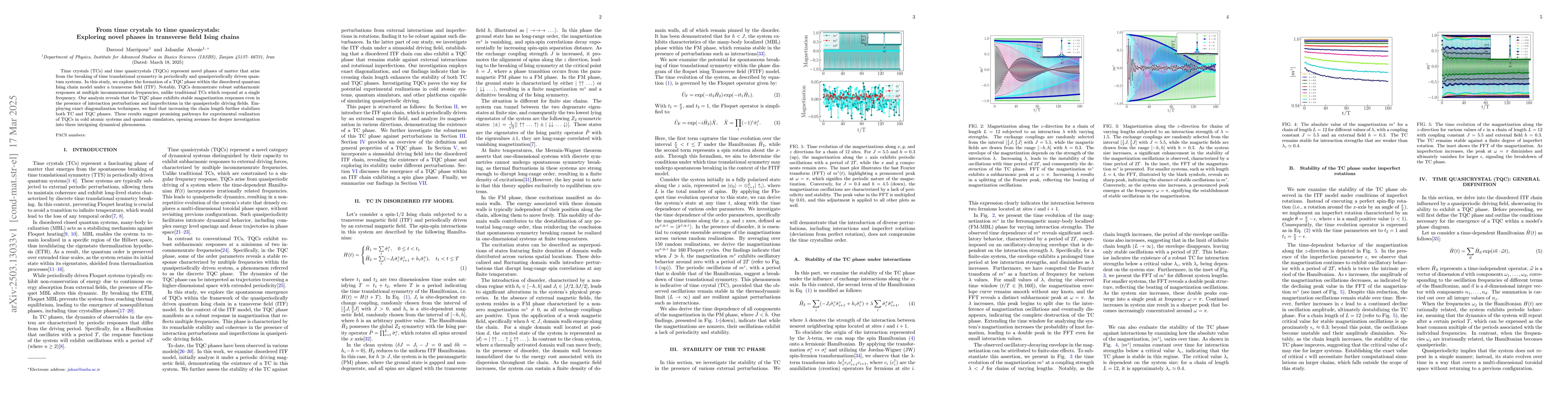 The study employs exact diagonalization techniques and explores the disordered quantum Ising chain model under a transverse field (ITF) to investigate the formation of a time quasicrystal (TQC) phase.