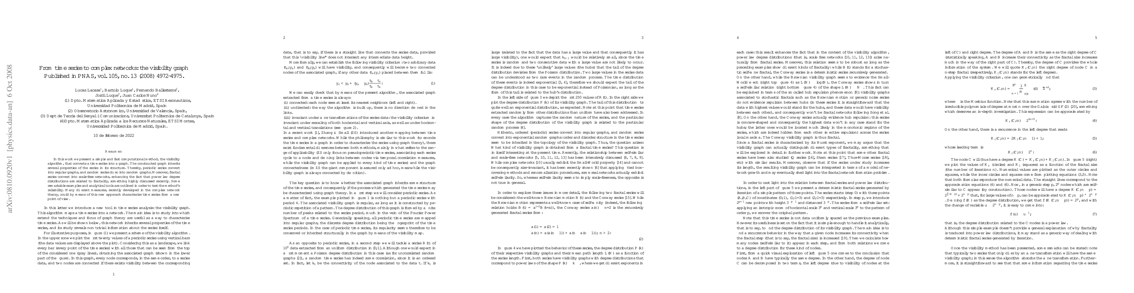 A new method called the visibility algorithm converts time series data into complex networks, revealing properties such as periodicity, randomness, and fractality.