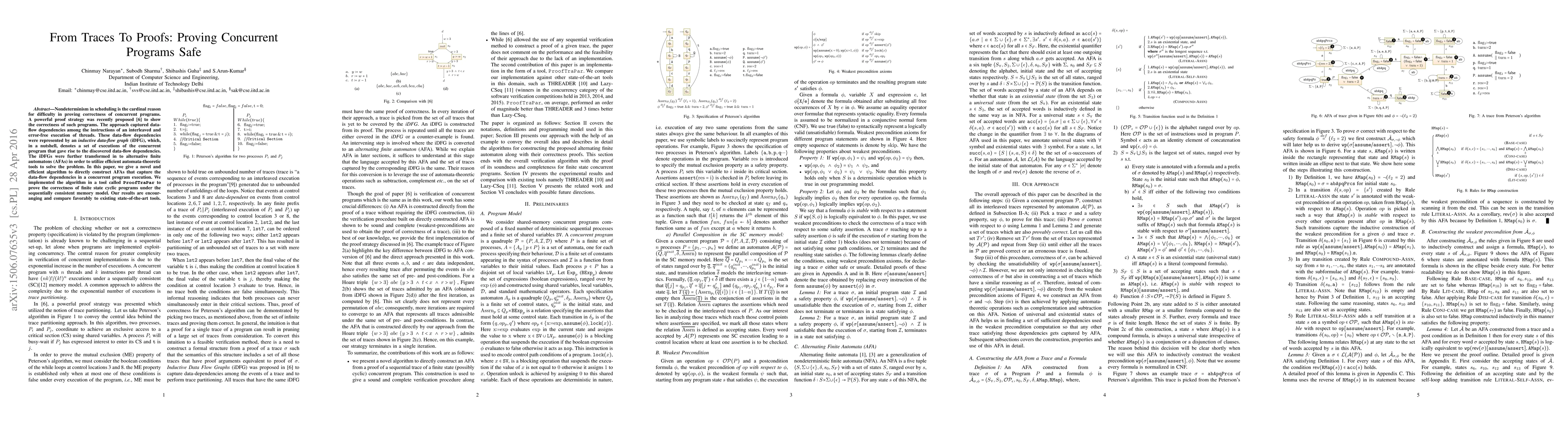 Nondeterminism in scheduling is the cardinal reason for difficulty in proving correctness of concurrent programs. A powerful proof strategy was recently proposed [6] to show the correctness of such programs. The approach captured data-flow dependencies among the instructions of an interleaved and error-free execution of threads. These data-flow dependencies were represented by an inductive data-flow graph (iDFG), which, in a nutshell, denotes a set of executions of the concurrent program that gave rise to the discovered data-flow dependencies. The iDFGs were further transformed in to alternative finite automatons (AFAs) in order to utilize efficient automata-theoretic tools to solve the problem. In this paper, we give a novel and efficient algorithm to directly construct AFAs that capture the data-flow dependencies in a concurrent program execution. We implemented the algorithm in a tool called ProofTraPar to prove the correctness of finite state cyclic programs under the sequentially consistent memory model. Our results are encouranging and compare favorably to existing state-of-the-art tools.