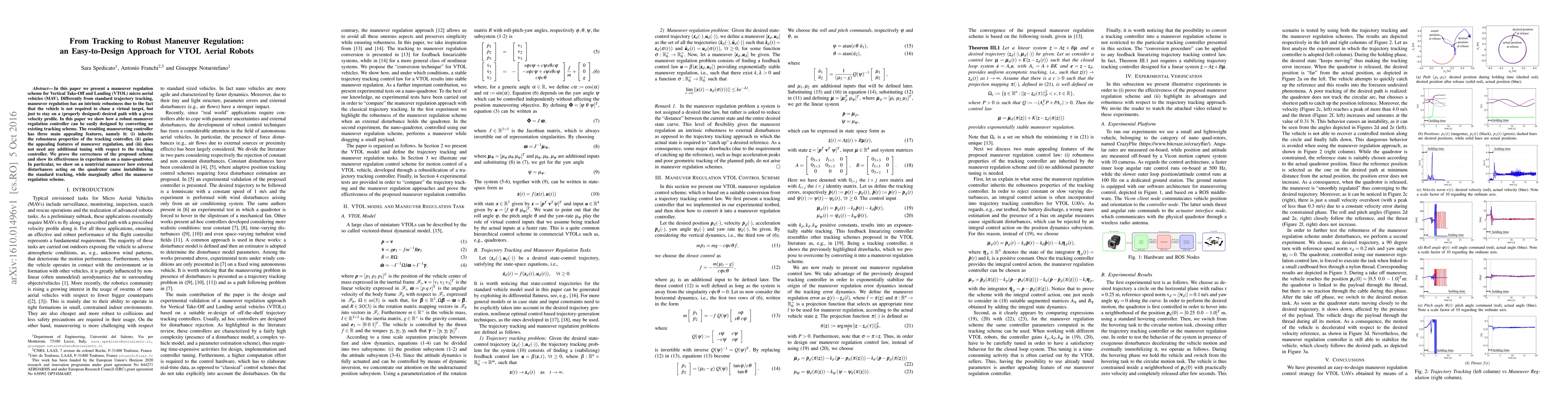 In this paper we present a maneuver regulation scheme for Vertical Take-Off and Landing (VTOL) micro aerial vehicles (MAV). Differently from standard trajectory tracking, maneuver regulation has an intrinsic robustness due to the fact that the vehicle is not required to chase a virtual target, but just to stay on a (properly designed) desired path with a given velocity profile. In this paper we show how a robust maneuver regulation controller can be easily designed by converting an existing tracking scheme. The resulting maneuvering controller has three main appealing features, namely it: (i) inherits the robustness properties of the tracking controller, (ii) gains the appealing features of maneuver regulation, and (iii) does not need any additional tuning with respect to the tracking controller. We prove the correctness of the proposed scheme and show its effectiveness in experiments on a nano-quadrotor. In particular, we show on a nontrivial maneuver how external disturbances acting on the quadrotor cause instabilities in the standard tracking, while marginally affect the maneuver regulation scheme.